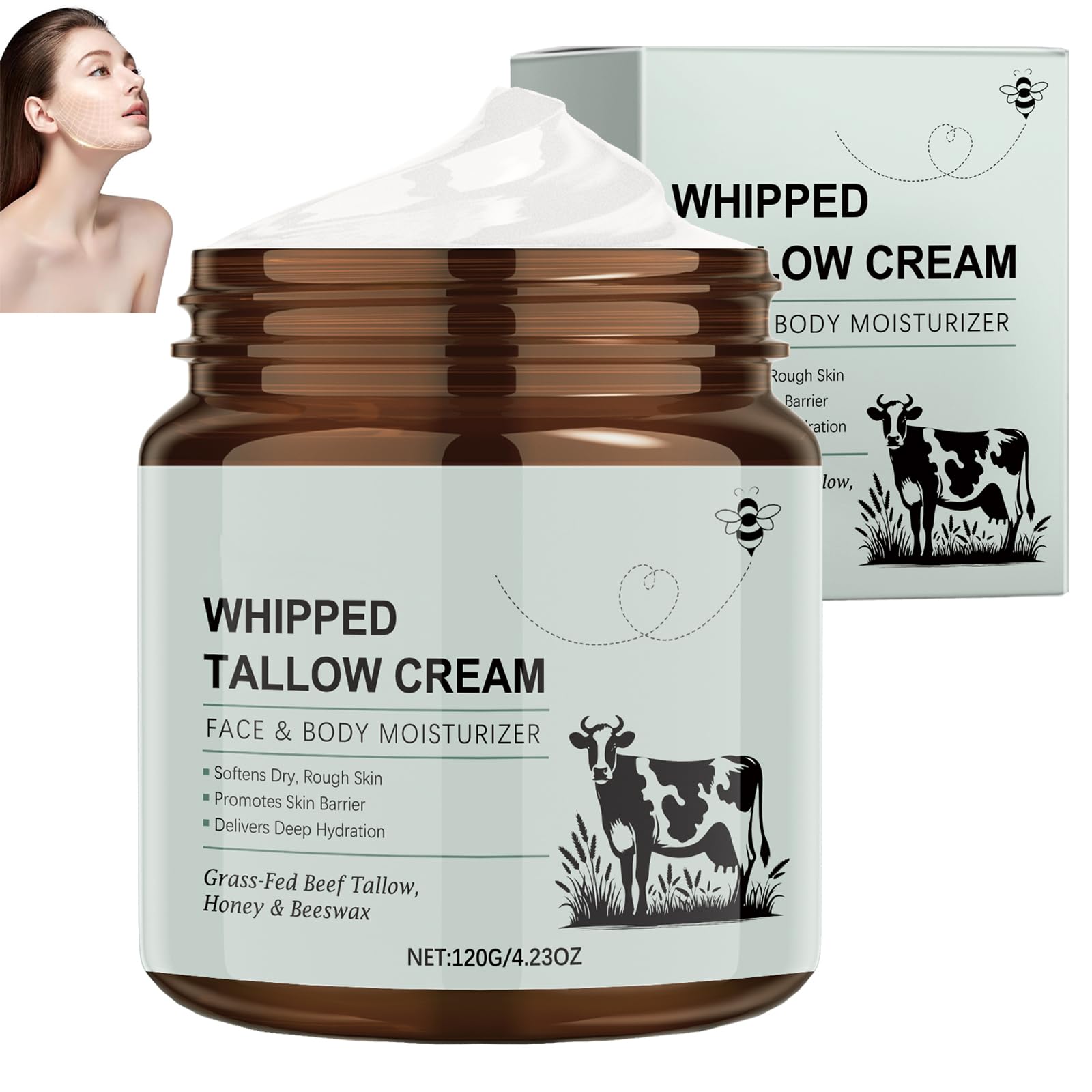 Experience the nourishing power of our Organic Grass-Fed Beef Tallow Cream! Our beef tallow moisturizer is free from artificial preservatives, fragrances, and parabens, offering chemical-free hydration for all ages. It absorbs quickly without leaving a greasy residue, suitable for all skin types and can be used as a daily facial moisturizer, body lotion, or lip balm. It's ideal for softening dry areas like elbows, hands, and feet, providing moisture without clogging pores. How to Use: Start with freshly cleansed skin. Apply a generous amount of Tallow cream evenly to the face or body, and gently massage the skin in circular motions until fully absorbed. Disclaimer: For external use only. Avoid contact with eyes. If irritation occurs, discontinue use immediately. Do not use it on broken or damaged skin. Store in a cool dry place away from sunlight. Keep out of reach of children and pets.