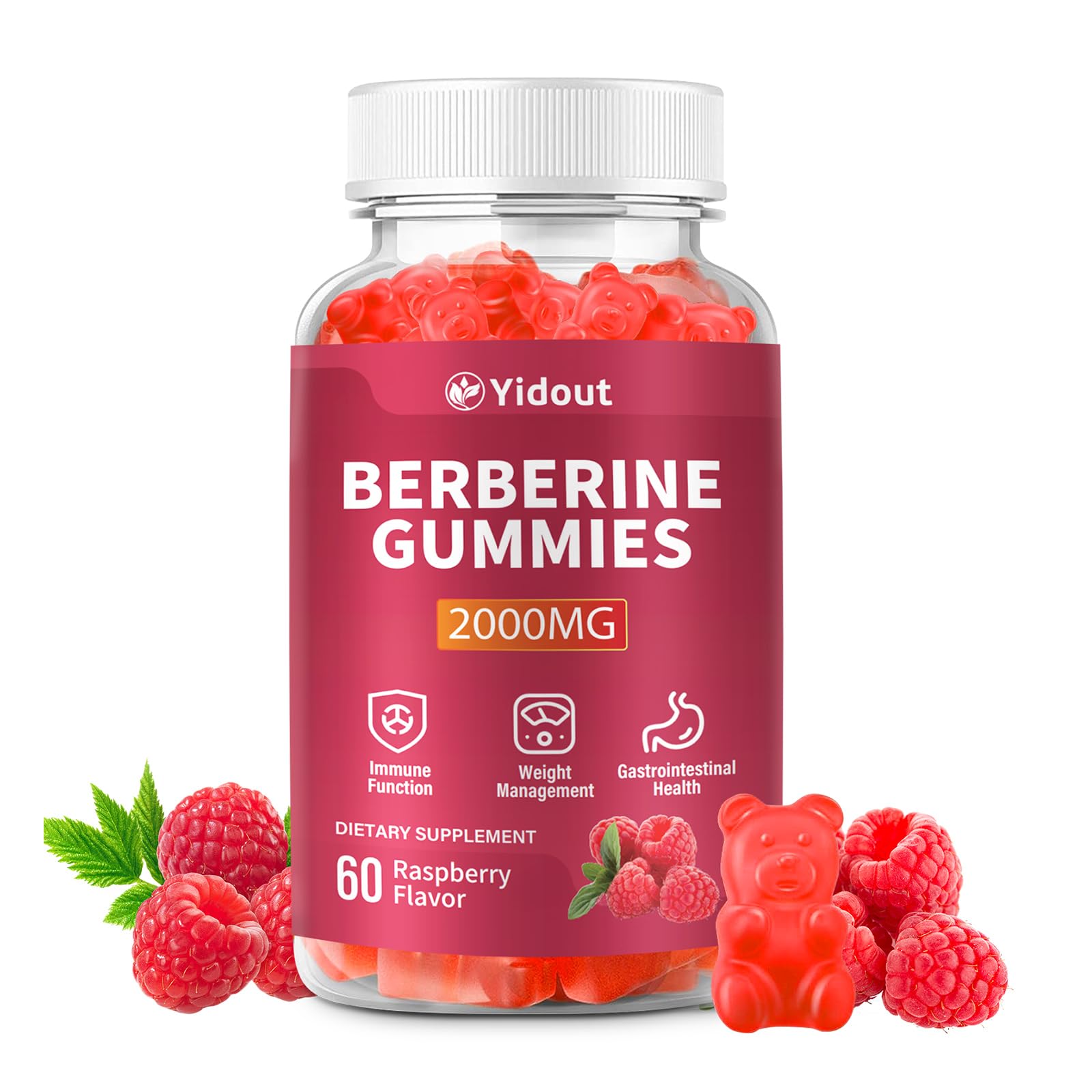 Berberine Gummies 2000mg-Natural High Potency Berberine HCL Supplement - Immune System & Metabolism Support - Vegan Non-GMO - Delicious Raspberry Flavor (60 Count(Pack of 1)) 60 Count (Pack of 1)