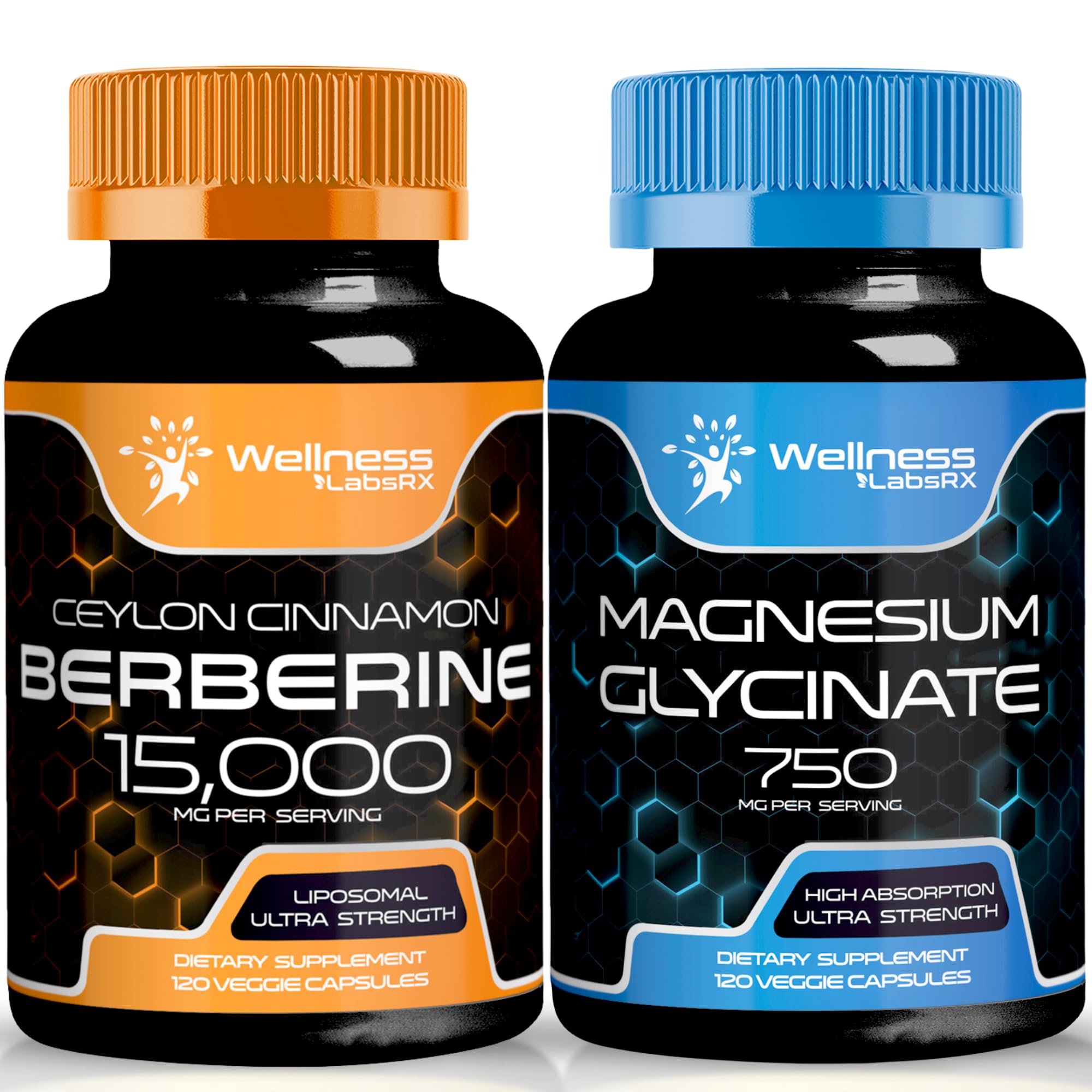 Berberine Supplement 1500mg - Liposomal Berberine with Ceylon Cinnamon Magnesium Glycinate Capsules - 750mg - Magnesium Supplement High Absorption Supplement