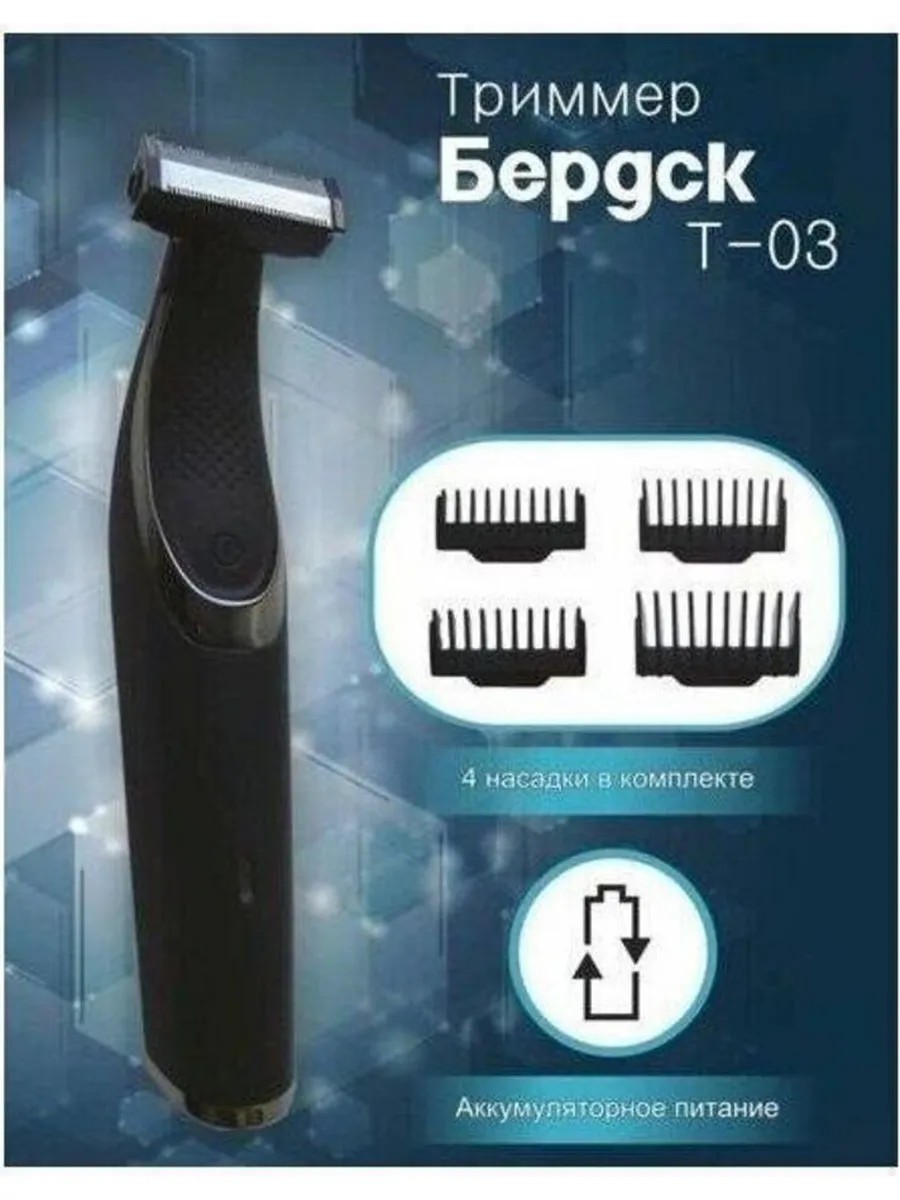Триммер-03 предназначен для подстрижки висков, усов и бороды, для окантовки контура прически.По типу защиты от поражения электрического тока блок питания прибора соответствует классу II.Прибор работает от встроенных аккумуляторов постоянного тока.Зарядка аккумуляторов осуществляется от электрической сети однофазного переменного тока номинальным напряжением 220 В, частотой 50 Гц Номинальная потребляемая мощность при зарядке- 5Вт.Время зарядки аккумуляторов- 2 часов.Время работы заряженных аккумуляторов – около 2 час Режим работы- кратковременный.Рекомендуемая длительность рабочего цикла- не более 10 мин