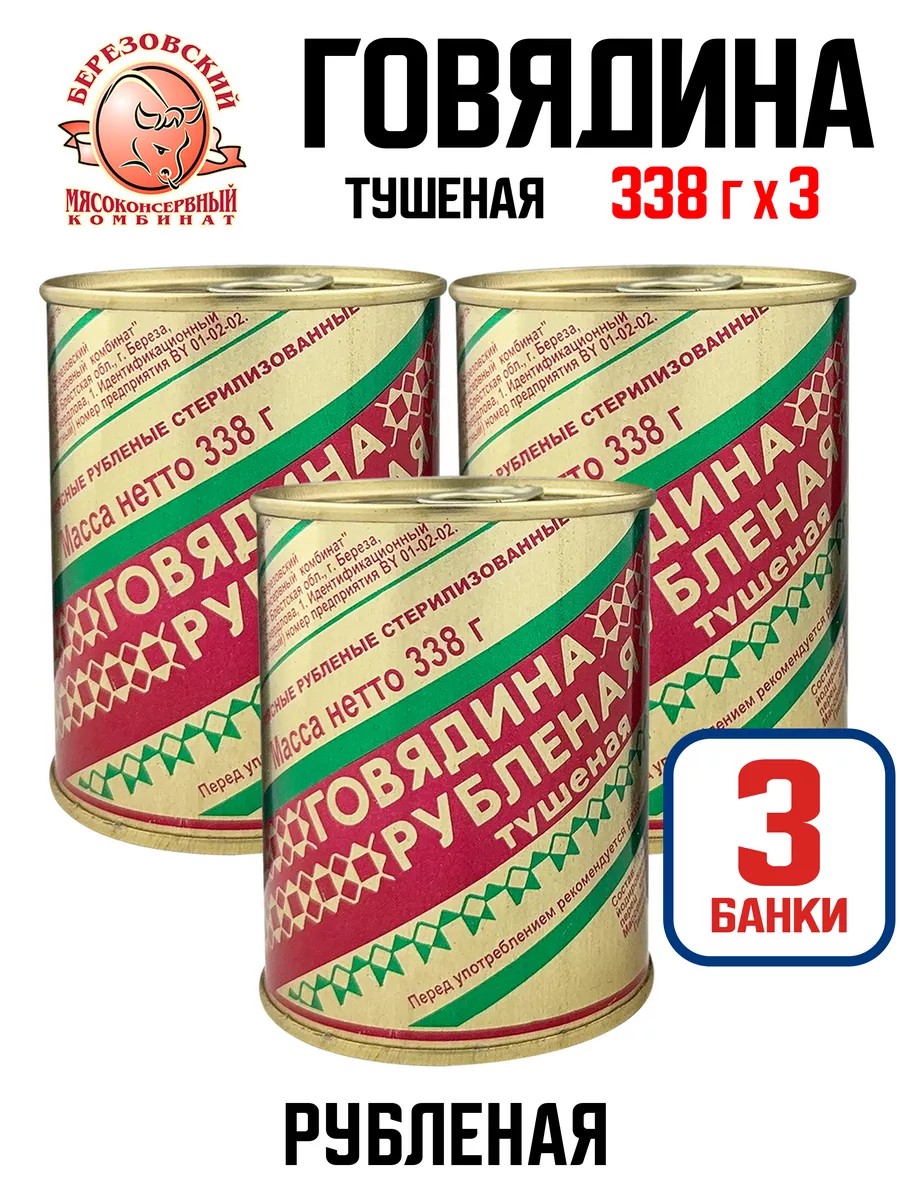 Березовский мясоконсервный комбинат Консервы - Говядина рубленая тушеная, 338 г - 3 шт