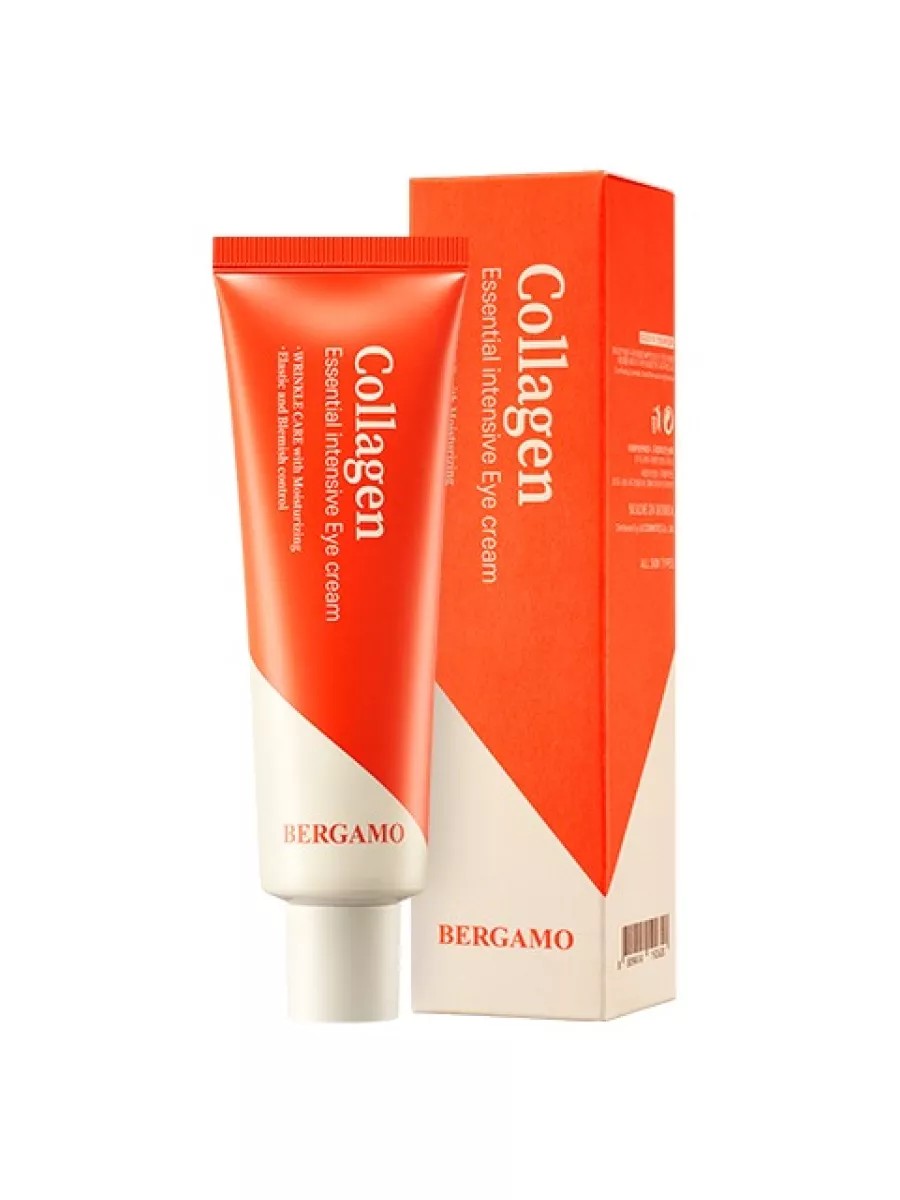 BERGAMO Collagen Essential Intensive Eye Cream provides an anti-aging effect on the delicate skin of the eyelids, smoothing, nourishing, and improving elasticity. It brightens dark circles and prevents dryness and tightness around the eyes. It prevents the appearance of expression wrinkles around the eyelids, evens out skin tone, prevents pigmentation, replenishes moisture, and improves collagen and elastin synthesis.