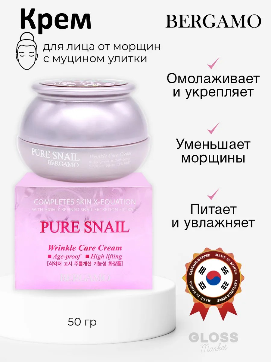 | Комплектация | Крем для лица от морщин омолаживающий увлажняющий с улиткой Bergamo Pure Snail Wrinkle Care Cream |