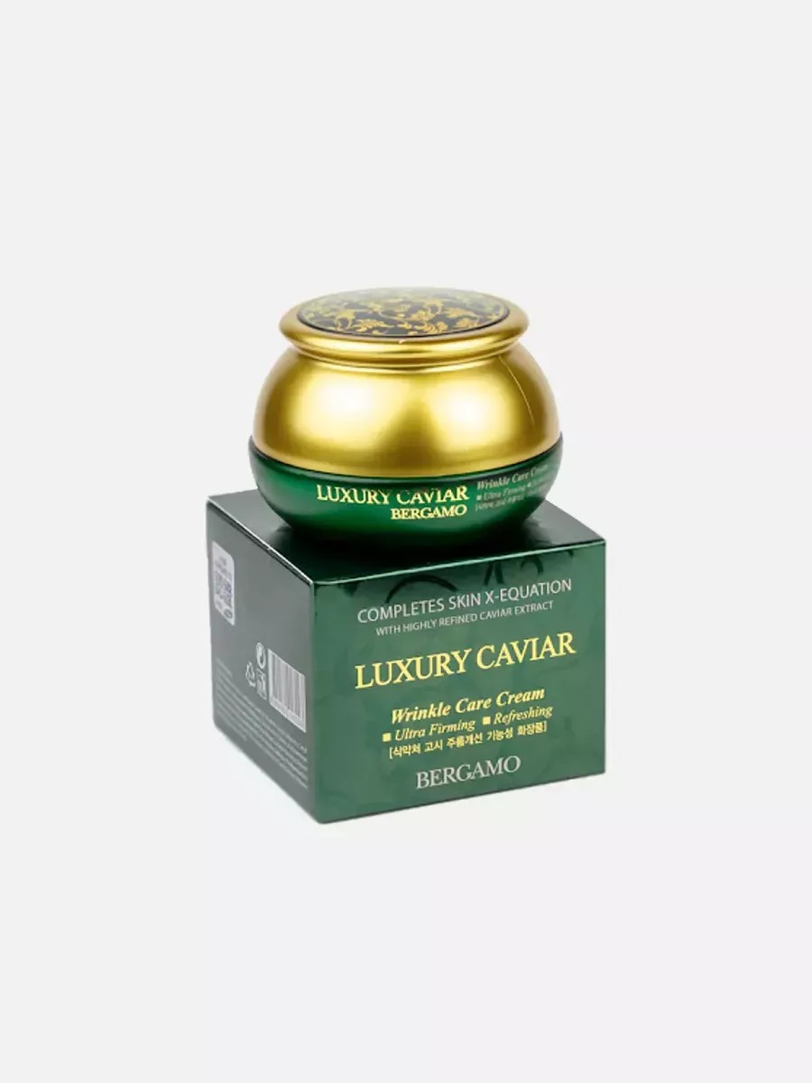 Крем с антивозрастным компонентом – икрой, помогает не только восстанавливать кожу, но и предотвращает ранее старение клеток. Легкая текстура Luxury Caviar Wrinkle Care Cream от корейского бренда Bergamo мгновенно проникает в ткани, активирует «спящие» клетки и усиливает обновление. В результате кожа преображается изнутри. Коллаген вырабатывается в несколько раз быстрее, поступает гиалуроновая кислота, которая заполняет клетки влагой и предотвращает появление шелушений. Экстракт черной (осетровой) икры богат белками, витаминами и микроэлементами, которые деликатно выравнивают тон, улучшают микроциркуляцию крови в клетках, выводят из организма токсины и шлаки, предотвращают новое появление морщин. В комплексе с другими компонентами крема экстракт икры оказывает на кожу интенсивное увлажняющее, смягчающее и подтягивающее действие, улучшает цвет лица, придает ему сияние. Эффективно омолаживает кожу, разглаживает морщины и возвращает коже упругость и эластичность, стимулирует регенерацию клеток кожи. Аденозин создает на поверхности кожи защитную сетку, которая блокирует действие ультрафиолета, предотвращает образование свободных радикалов и процессов окисления, стимулирует синтез коллагена и дарит коже упругость, красоту и сияние. Подходит для всех типов кожи. Может применяться в качестве дневного и/или ночного крема. Объём: 50 гр.