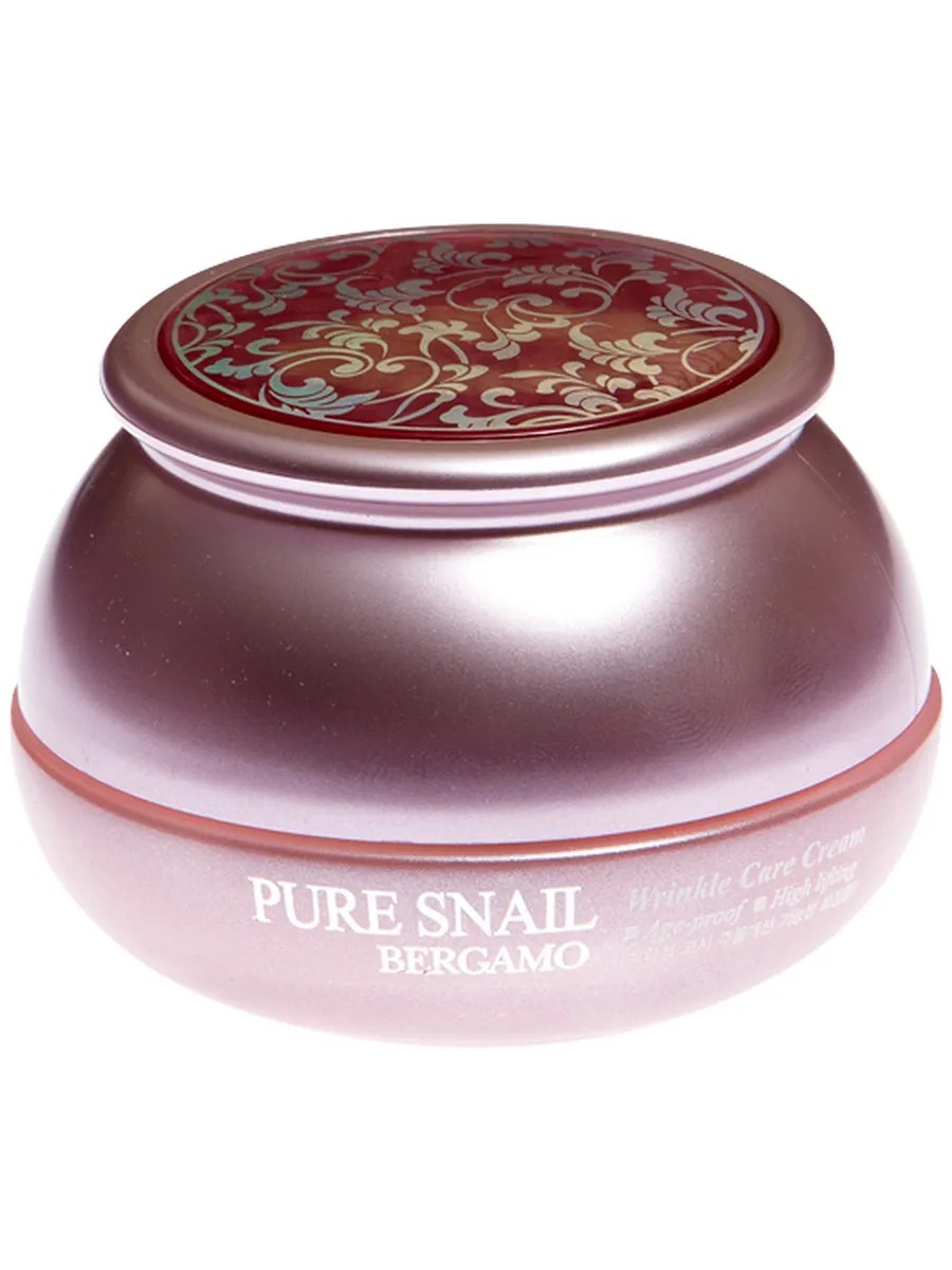 Омолаживающий крем с муцином улитки BERGAMO PURE SNAIL WRINKLE CARE CREAM содержит активные компоненты крема от корейского производителя Bergamo которые мгновенно впитываются и активируют процессы восстановления клеток. Легкая формула не оставляет следов липкости и жирности. Создает на поверхности кожи тонкую воздухопроницаемую пленку, которая защищает клетки от агрессивного действия факторов окружающей среды, стрессов и свободных радикалов. Молекулы крема проникают в клетки, насыщая их активным кислородом, влагой, помогают удерживать воду внутри клеток, предотвращая обезвоживание тканей. Помогают усилить защитные функции клеток, способствуют улучшению микроциркуляции крови и дарят коже эластичность и гладкость. Улиточный муцин богат гликопротеинами, которые усиливают процессы регенерации тканей, улучшают кровоток, стимулируют заживление ранок, деликатно отшелушивают роговой слой клеток и омолаживают кожный покров.