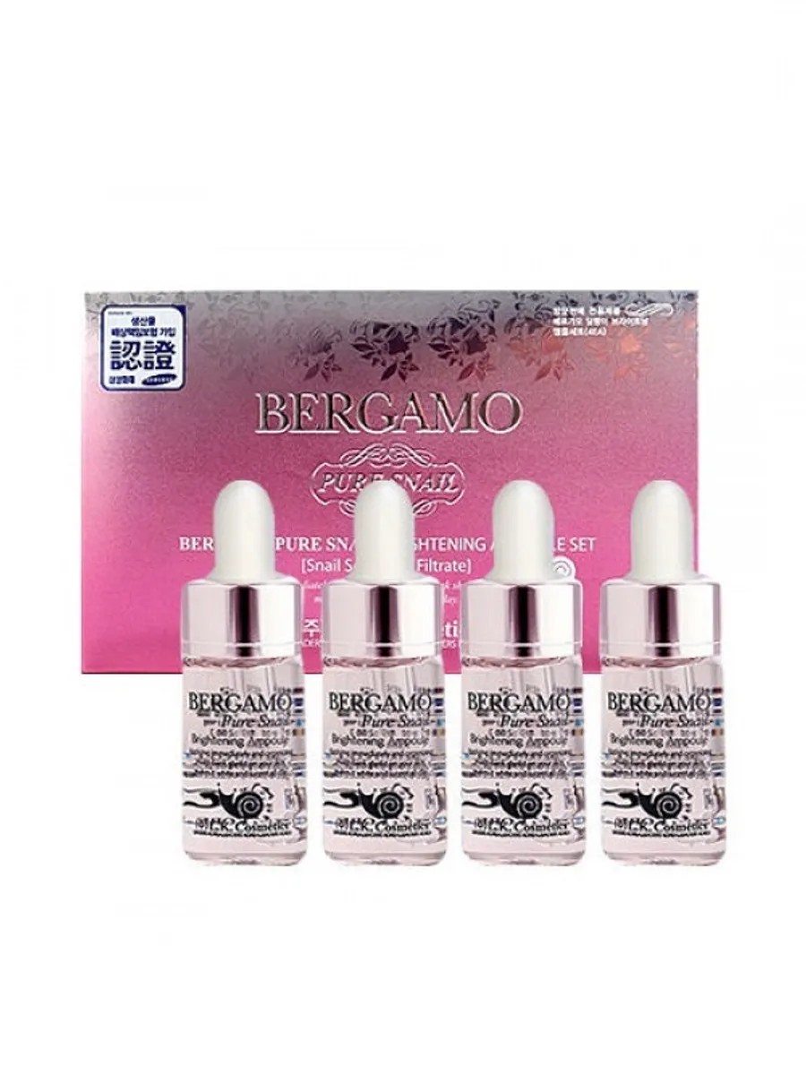 Набор восстанавливающих сывороток для лица Pure Snail Brightening Ampoule Set от корейского бренда Bergamo предназначен для курсового восстановления уставшей, увядающей, теряющей тонус кожи.