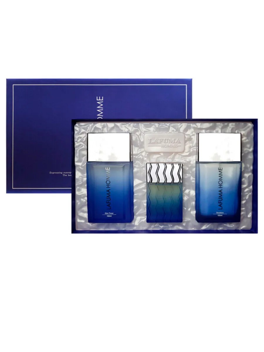 The Bergamo Lafuma Homme Blue Skincare Set is designed to meet the needs of men's skin. The toner and emulsion complement the scent of the men's eau de toilette. The eau de toilette has a fresh, invigorating scent. The toner softens and soothes sensitive skin, containing allantoin and hyaluronic acid. Aloe and green tea extracts also help maintain skin purity.