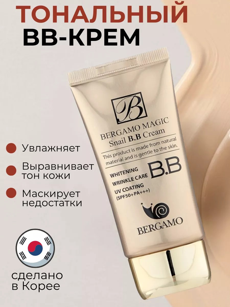 | Комплектация | Увлажняющий тональный крем с муцином улитки Bergamo Magic Snail BB Cream SPF 50+ PA+++ 50 мл |