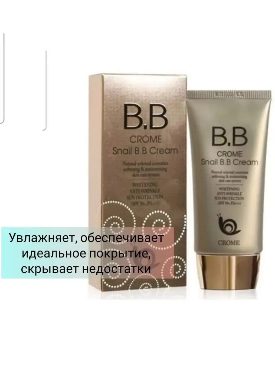 Cromee BB cream корректирующее уходовое средство с улиточным муцином. Муцин славится своими регенерирующими способностями, так как содержит аллантоин (заживляет и регенерирует ткани), медные пептиды (стимулируют выработку коллагена), антимикробные пептиды (уменьшает воспаления), комплекс витаминов и белков, способствующих питанию и обновлению кожи. Cromeу BB cream выпускается в одном цвете с примесью перламутровых частиц, подсвечивающих лицо. Крем так же может применяться в качестве базы под макияж. Пахнет приятно и не вызовет отторжения даже у аллергиков. Распределяется по коже легко, обладает осветляющим эффектом. Максимальная солнцезащита на уровне SPF 50 защищает от UVA UVB лучей. Хорошо выравнивает тон кожи, оставляя после себя тонкое покрытие. Уходовые функции продукта обеспечивают масло жожоба, гиалуроновая кислота, нинацинамид и пчелиный воск.