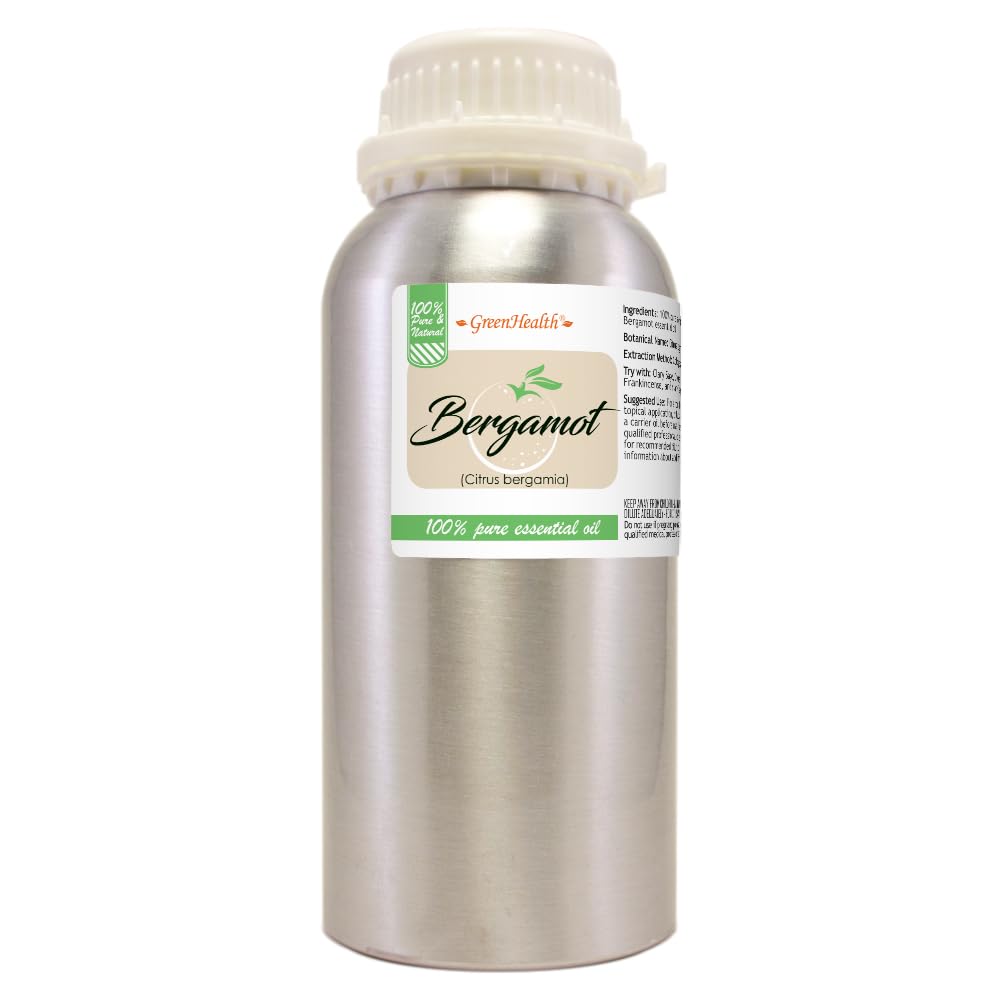 Bergamot Essential Oil 16 fl oz (473 ml) Aluminum Bottle w/Plug Cap 100% Pure Essential Oil GreenHealth