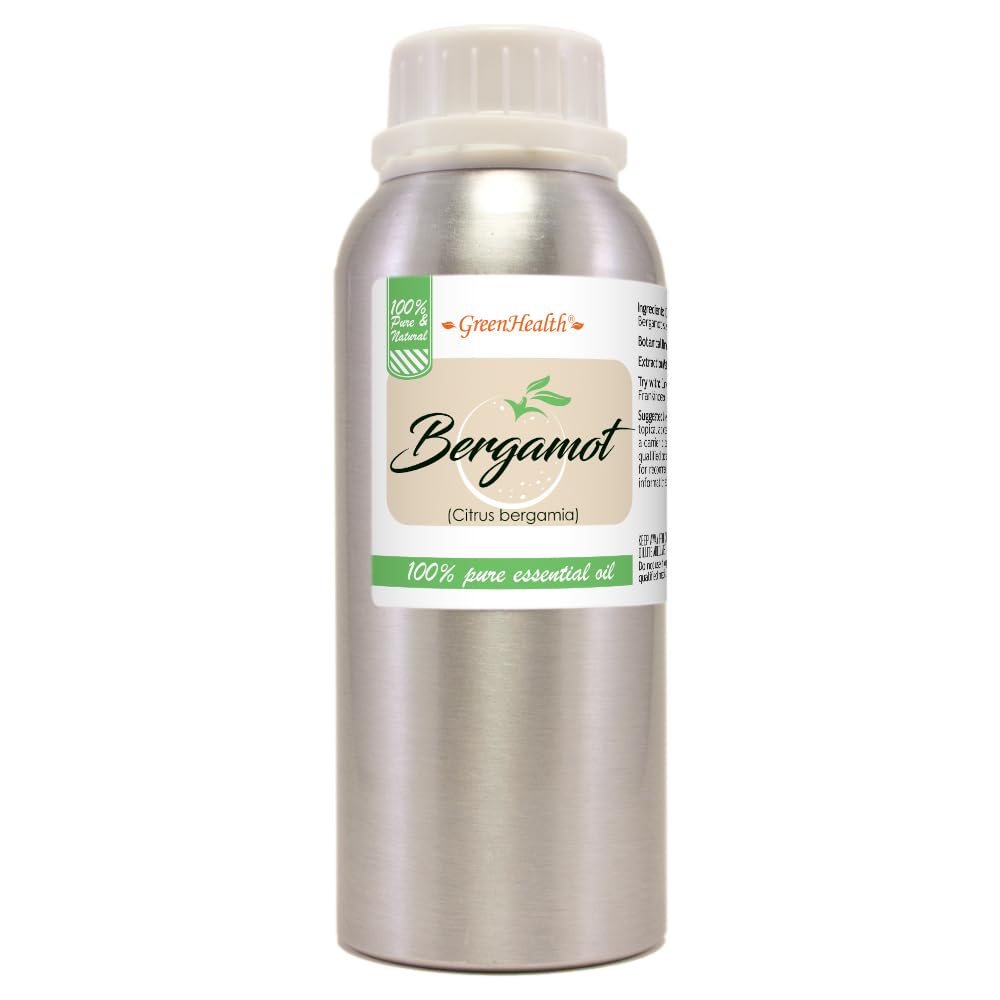 Bergamot Essential Oil 8 fl oz (237 ml) Aluminum Bottle w/Plug Cap 100% Pure Essential Oil - GreenHealth