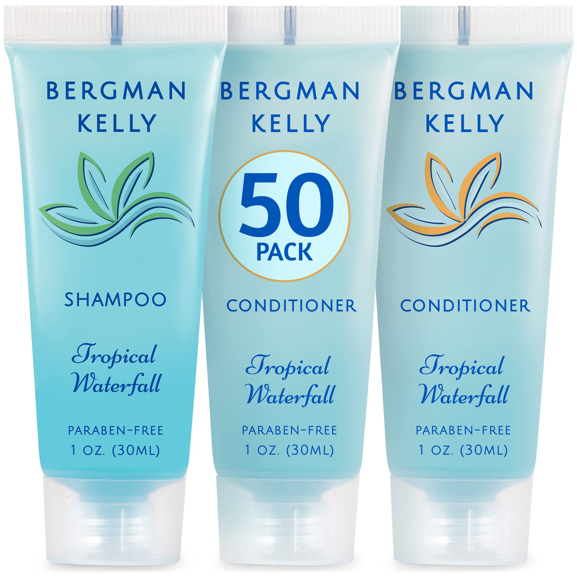BERGMAN KELLY Travel Shampoo and Conditioner Set (1 fl oz 100 Pieces Tropical Waterfall) Delight Your Guests with an Invigorating and Refreshing Hotel Toiletries and Guest Hospitality in Bulk 1 Fl Oz (Pack of 50) 50 P...