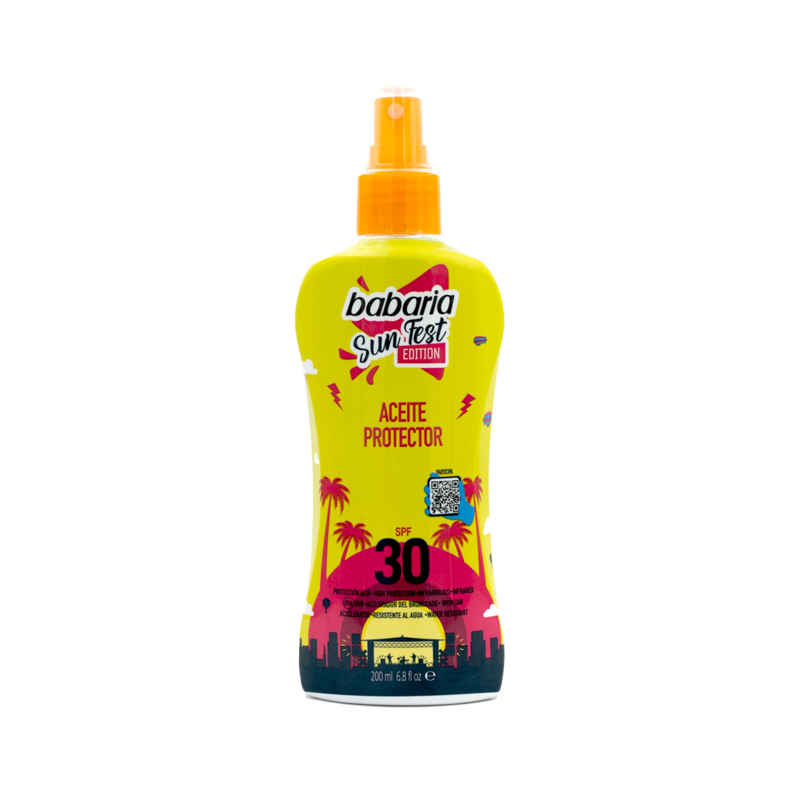 The protective spray SPF 30 is a sunscreen spray for the body with high protection. Part of the SunFest collection, a limited edition sun cream, introduced by the Babaria brand. This product not only allows you to enjoy the sun, but it is also a tanning activator that aims to strengthen the brunette in the summer. This limited edition of SunFest sunscreen has been specially developed to protect you at all festivals. Haven't heard of Babaria yet? We are a cosmetics and body care brand. We produce cosmetics with working principle. We use the best active ingredients to produce all our facial, sun, hair and body products. INSTRUCTIONS FOR USE Apply evenly before sunbathing. To maintain protection, repeat use of the product often, especially after removing, bathing or drying. SAFETY WARNING Less ordering leads to a significant reduction in protection. Keep babies and toddlers away from direct sunlight. Do not use for children under 6 months. Avoid contact with the eyes. Avoid contact with clothing. Avoid excessive sunlight in the afternoon. Excessive sunlight is a major health risk. Keep out of the reach of children. See moreWater resistance: Our sun spray SPF 30 is waterproof and protects even after swimming or sweating, ideal for outdoor activities or on the beach. Ideal for the family: Designed to be safe and effective for children and adults, this sun spray is the perfect companion for any family outing. Enjoy worry-free sun protection for yourself and your loved ones. Tanning accelerator: enriched with beta-carotene, known to enhance tanning, our sun spray helps you achieve a golden and even tan while caring for your skin. Sun protection for the body. This sun tanning spray offers UVA protection, causes premature skin aging, UVB, burns and infrared. Solar oil 30: two-phase sun protection in 30 format. Works as sun protection and tanning accelerator.Babaria Zonnebrandolie LSF30, 200 ml, gelimiteerde editie, zonneolie 30, zonnebrandcrème en bruiningsversneller De beschermende spray SPF 30 is een zonnebrandspray voor het lichaam met hoge bescherming. Onderdeel van de SunFest-collectie, een gelimiteerde oplage zonnecrème, geïntroduceerd door het merk Babaria Met dit product kun je niet alleen van de zon genieten, maar het is ook een bruiningsactivator die de brunette in de zomer wil versterken. Deze limited edition van SunFest zonnecrème is speciaal ontwikkeld om je op alle festivals te beschermen. Nog niet van Babaria gehoord? Wij zijn een merk voor cosmetica en lichaamsverzorging. Wij produceren cosmetica met werkingsprincipe. We gebruiken de beste werkzame stoffen om al onze gezichts-, zonne-, haar- en lichaamsproducten te produceren. GEBRUIKSAANWIJZING Voor het zonnebaden gelijkmatig aanbrengen. Om de bescherming te behouden, herhaal je het gebruik van het product vaak, vooral na het verwijderen, baden of drogen. VEILIGHEIDSWAARSCHUWING Minder bestelling leidt tot een aanzienlijke vermindering van de bescherming. Houd baby's en peuters uit de buurt van direct zonlicht. Niet gebruiken voor kinderen jonger dan 6 maanden. Vermijd contact met de ogen. Vermijd contact met kleding. Vermijd overmatig zonlicht 's middags. Overmatig zonlicht is een belangrijk gezondheidsrisico. Buiten het bereik van kinderen bewaren. Meer bekijkenWaterbestendigheid: onze zonnespray SPF 30 is waterdicht en beschermt ook na het zwemmen of zweten, ideaal voor buitenactiviteiten of op het strand. Ideaal voor het gezin: deze zonnespray is ontworpen om veilig en effectief te zijn voor kinderen en volwassenen, deze zonnespray is de perfecte metgezel voor elk gezinsuitje. Geniet van zorgeloze zonwering voor jezelf en je dierbaren. Bruiningsversneller: verrijkt met bètacaroteen, bekend om de versterking van de bruining, helpt onze zonnespray je om een gouden en gelijkmatige bruine tint te bereiken en tegelijkertijd je huid te verzorgen. Zonwering voor het lichaam. Deze zonnebruiningsspray biedt UVA-bescherming, veroorzaakt vroegtijdige huidveroudering, UVB, brandwonden en infrarood. Zonneolie 30: tweefasige zonwering in 30-formaat. Werkt als zonwering en bruiningsversneller.