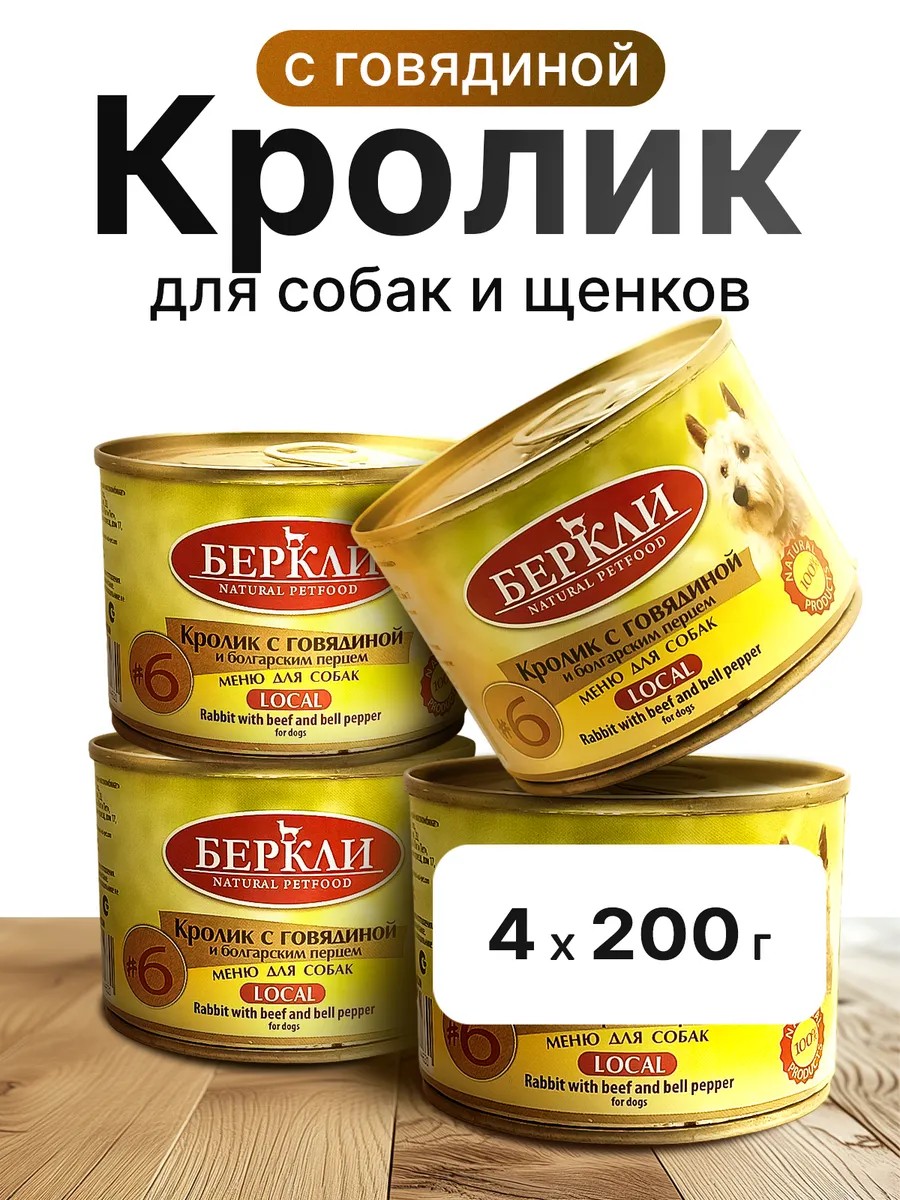 Berkley Беркли консервы для собак и щенков кролик-говядина 4шт*200г