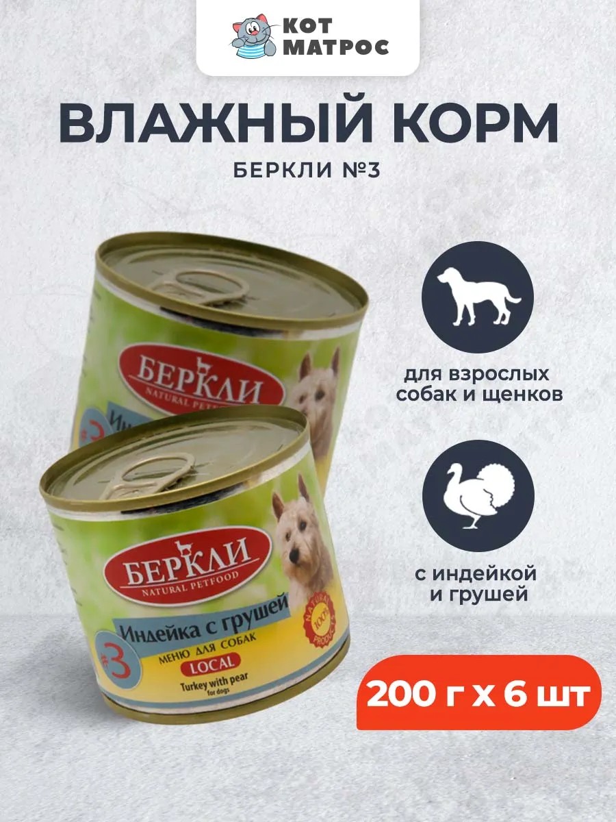 Berkley №3 корм для собак и щенков,индейка с грушей,200г x 6шт