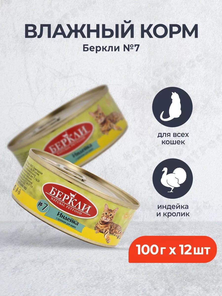 Berkley №7 влажный корм для кошек и котят, индейка - 100 г x 12 шт