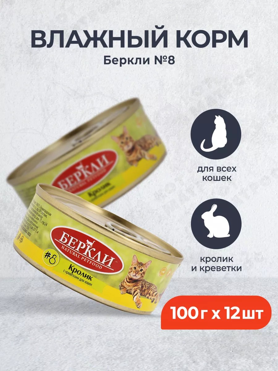 Berkley №8 влажный корм для кошек и котят, кролик - 100 г x 12 шт
