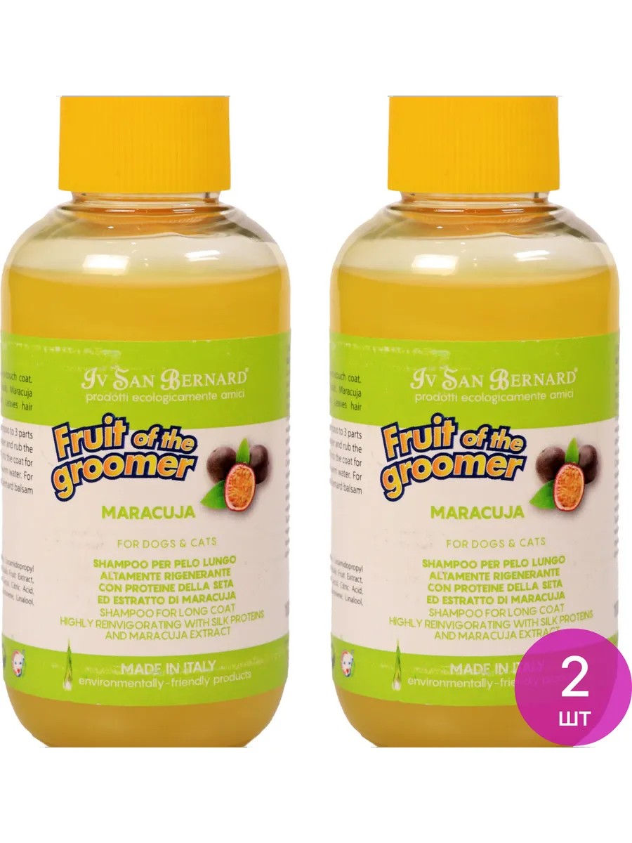 Шампунь Iv San Bernard Fruit of the Groomer Maracuja для длинной шерсти с протеинами придает шерсти шелковистость, обладает оживляющим эффектом.