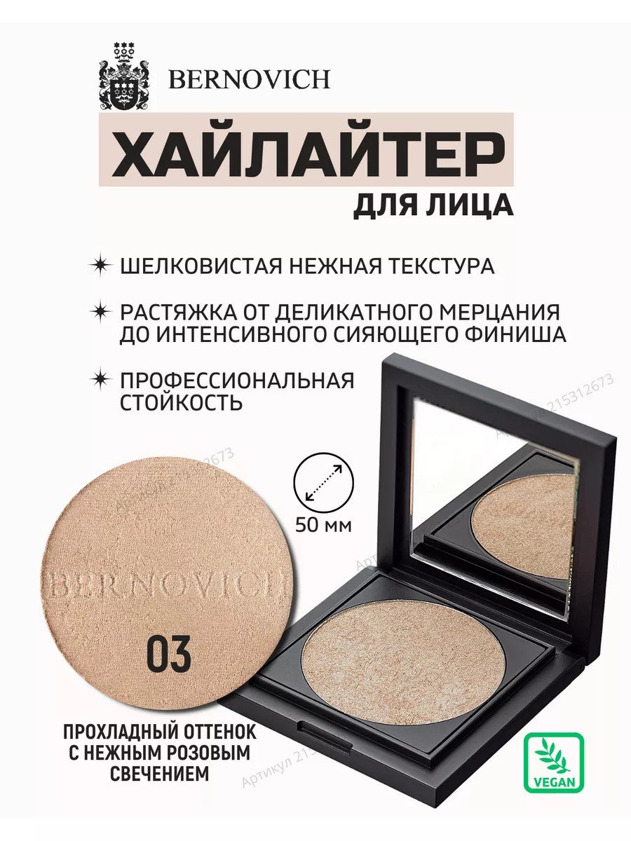 BERNOVICH Хайлайтер для лица с зеркалом тон № 03 нежно-розовый