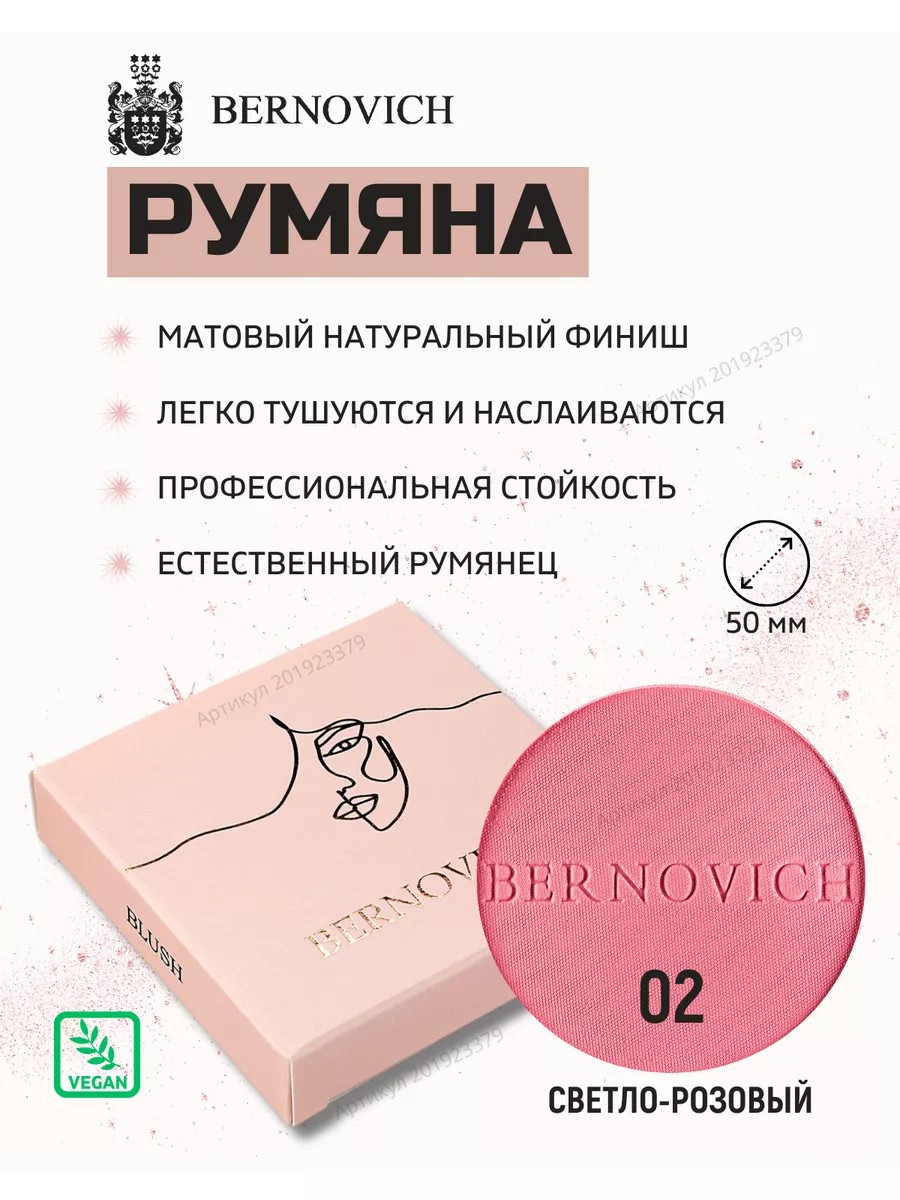 BERNOVICH Матовые Румяна рефил тон 02 светло-розовый