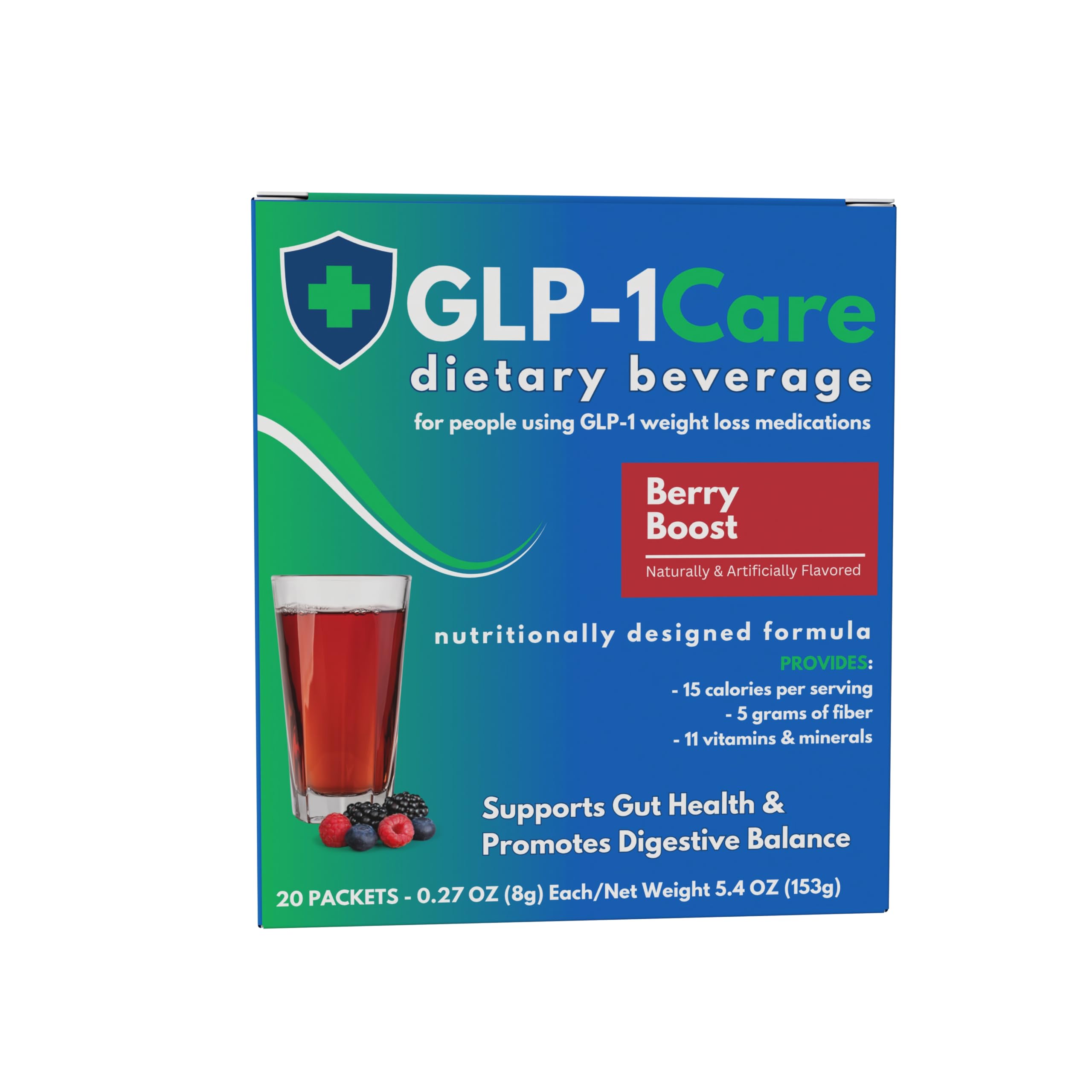 Berry Boost Fiber Drink 15 Calories GLP-1 Compatible 20 Servings Per Box Berry Boost 0.27 Ounce (Pack of 1)