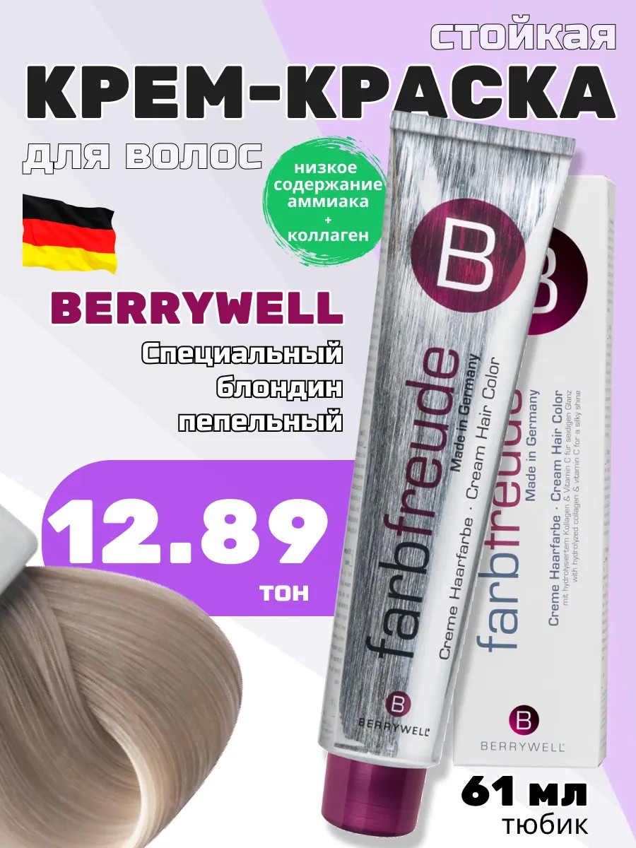 Berrywell Крем-краска для волос тон 12-89 Специальн блондин пепельный