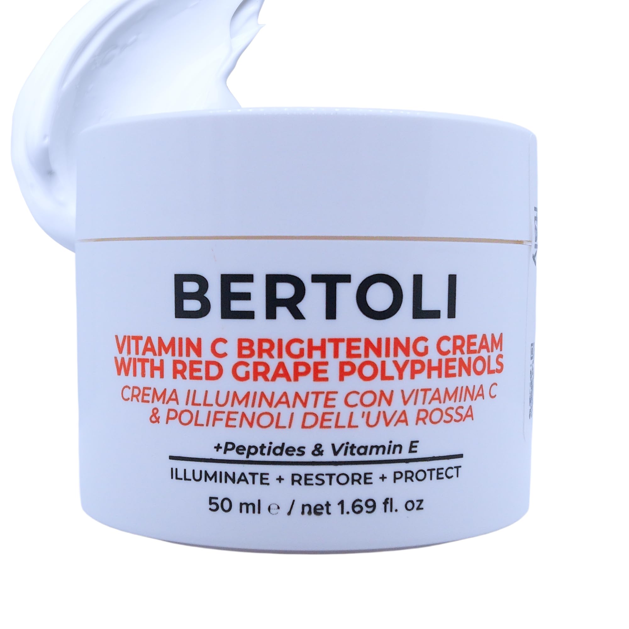 BERTOLI Brightening Cream Polyphenol Moisturizer for the Look of Dark Spots with Peptides Hyaluronic Acid Vitamin C & Grape Antioxidants | Italian Skincare | Clean Vegan