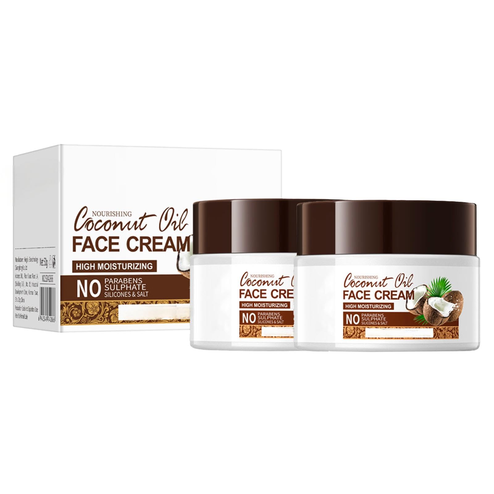 Beslibate 2pcs Coconut Moisturizing Cream Organic Day Cream with Virgin Coconut Oil 50ml*2 Anti-wrinkle Extra-firming Intense Hydration For All Skin Types cream6-7