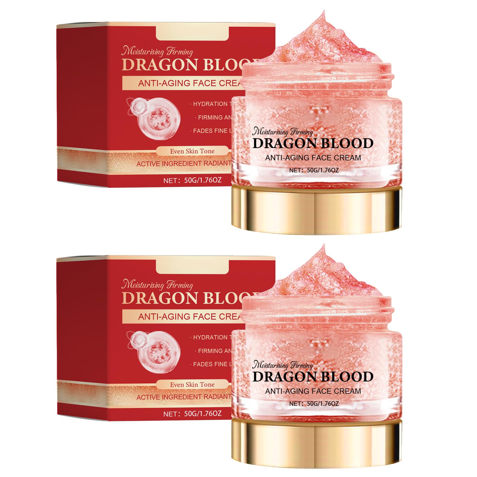 The effect of continued use is remarkable: prolonged use of Dragon's Blood Cream will make the skin smoother and more delicate. Dullness, fine lines, and other skin concerns will be significantly improved, resulting in a renewed skin condition. Light and non-greasy texture: Dragon's Blood Cream has a light texture that is easily absorbed by the skin and leaves no greasy residue, allowing you to easily enjoy your skincare routine. Moisturizing and nourishing: Dragon's Blood Cream regenerates and nourishes the skin. Its delicate, moisturizing texture compensates for the skin's lack of hydration, improving dry, rough, and dehydrated skin, leaving it supple and silky. It reduces the appearance of fine lines and wrinkles on the face, effectively minimizing facial lines and visibly reducing wrinkles. The moisturizing, anti-wrinkle formula retains moisture to keep the skin hydrated, firm, and elastic. Natural and organic: Made with delicate, refreshing, and non-sticky botanical ingredients, the dragon's blood cream regenerates and hydrates the skin. Its antioxidant and regenerating texture is pleasant.Crème De Sang De Dragon, Crème Visage Sang De Dragon, Hydrate et Illumine le teint Dissolvant Lignes Fines, Pour Blanchiment De La Peau et Réduction Des Rides (50g)2PCS cream3-2L'effet de l'utilisation continue est remarquable : l'utilisation prolongée de la crème au sang de dragon rendra la peau plus lisse et plus délicate, l'opacité, les lignes fines et autres problèmes seront considérablement améliorés, afin d'avoir une nouvelle condition de la peau. Texture légère et non grasse : la texture de la crème au sang de dragon est légère, très facile à absorber pour la peau et ne la fait pas sentir grasse, de sorte que vous pouvez facilement profiter du processus de soin de la peau. Hydratante et nourrissante : la crème au sang de dragon régénère et nourrit la peau. Sa texture délicate et hydratante compense le manque d'hydratation de la peau, améliorant la peau sèche, rugueuse et déshydratée et la laissant élastique et soyeuse. Réduit l'apparence des lignes fines et des rides sur le visage, minimisant efficacement les lignes du visage et réduisant visiblement les rides. La formule hydratante anti-rides retient l'humidité pour garder la peau hydratée, compacte et élastique. Naturel et biologique : à base d'ingrédients botaniques délicats, rafraîchissants et non collants, la crème au sang de dragon régénère et hydrate la peau. Sa texture antioxydante et régénérante est agréable.