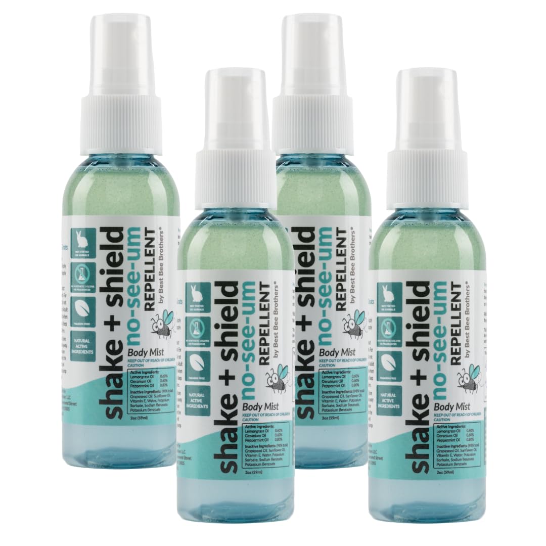 Best Bee Brothers Shake + Shield No-See-Ums Gnat Spray Non-Greasy Bug Spray Body Mist Made with Plant-Based Ingredients 2 Oz. (4 Pack)