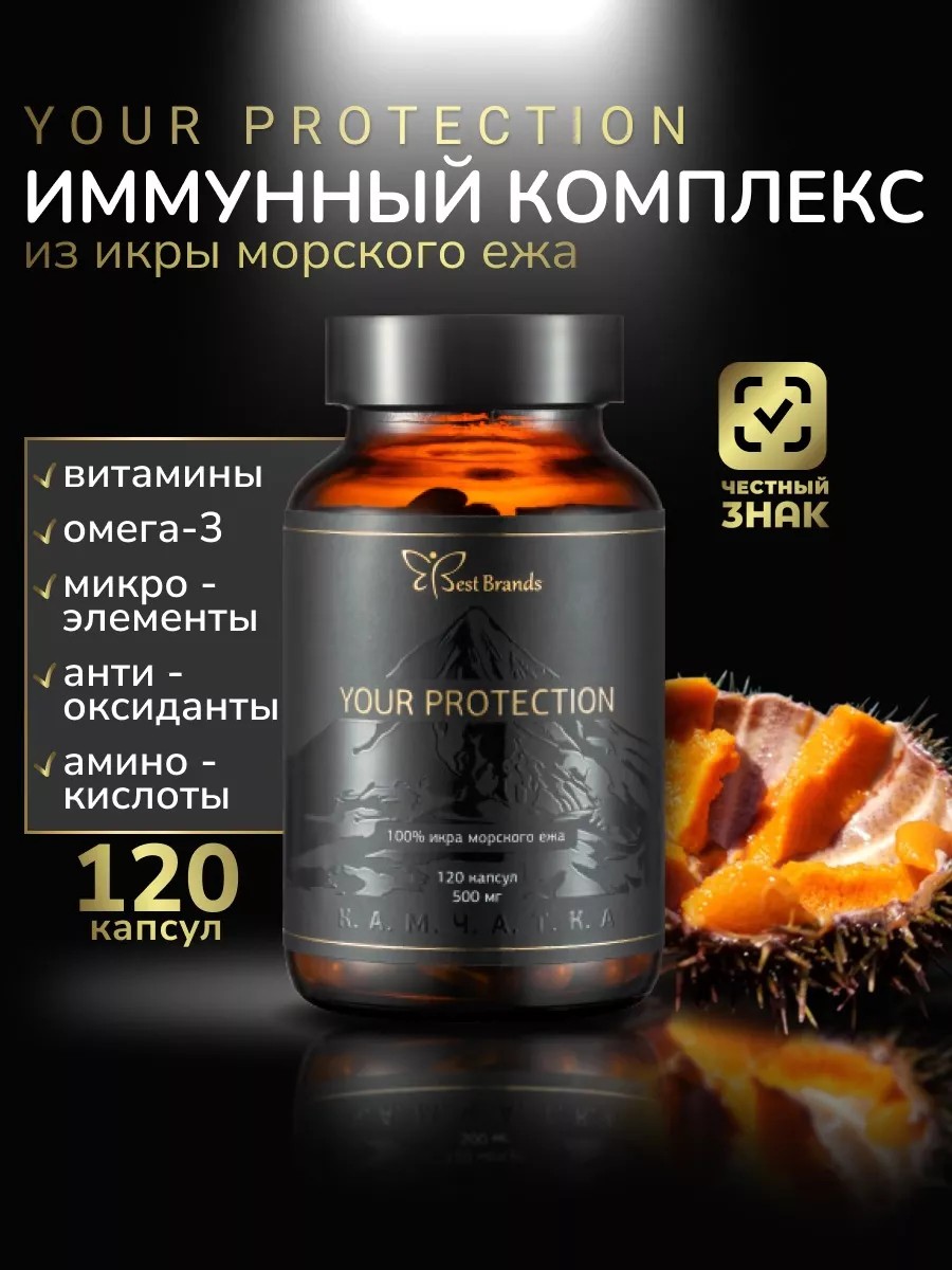 Best Brands 100% икра морского ежа. Your Protection. 120 капсул по 0,5 г