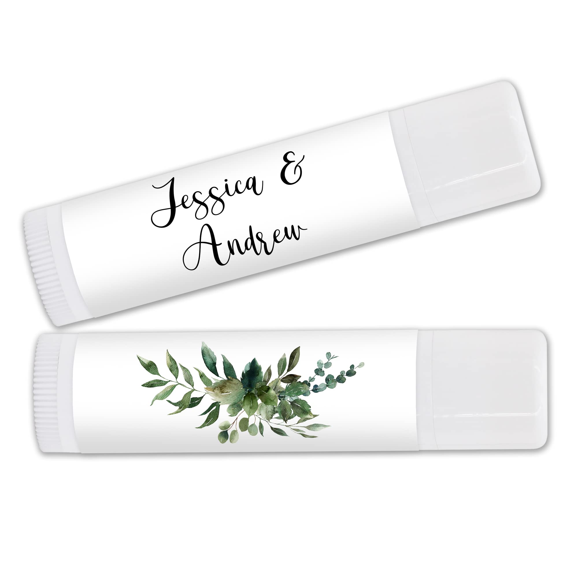 Our Personalized Lip Balms have beautiful floral designs that will match your wedding. Perfect for celebrating bridal showers, birthdays, and weddings just to name a few. Each stick of lip balm features a white exterior and contains balm made with Shea Butter, Beeswax, Vitamin E, and Aloe Vera. Your choice to easy assembly with self-adhesive labels or we can assemble them for you Proudly made in the USA.