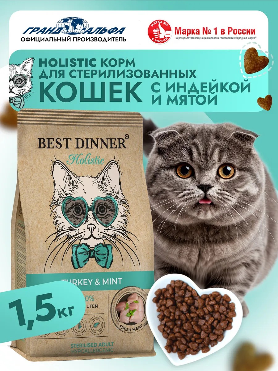 Best Dinner Корм для кошек сухой Индейка мята 1,5 кг