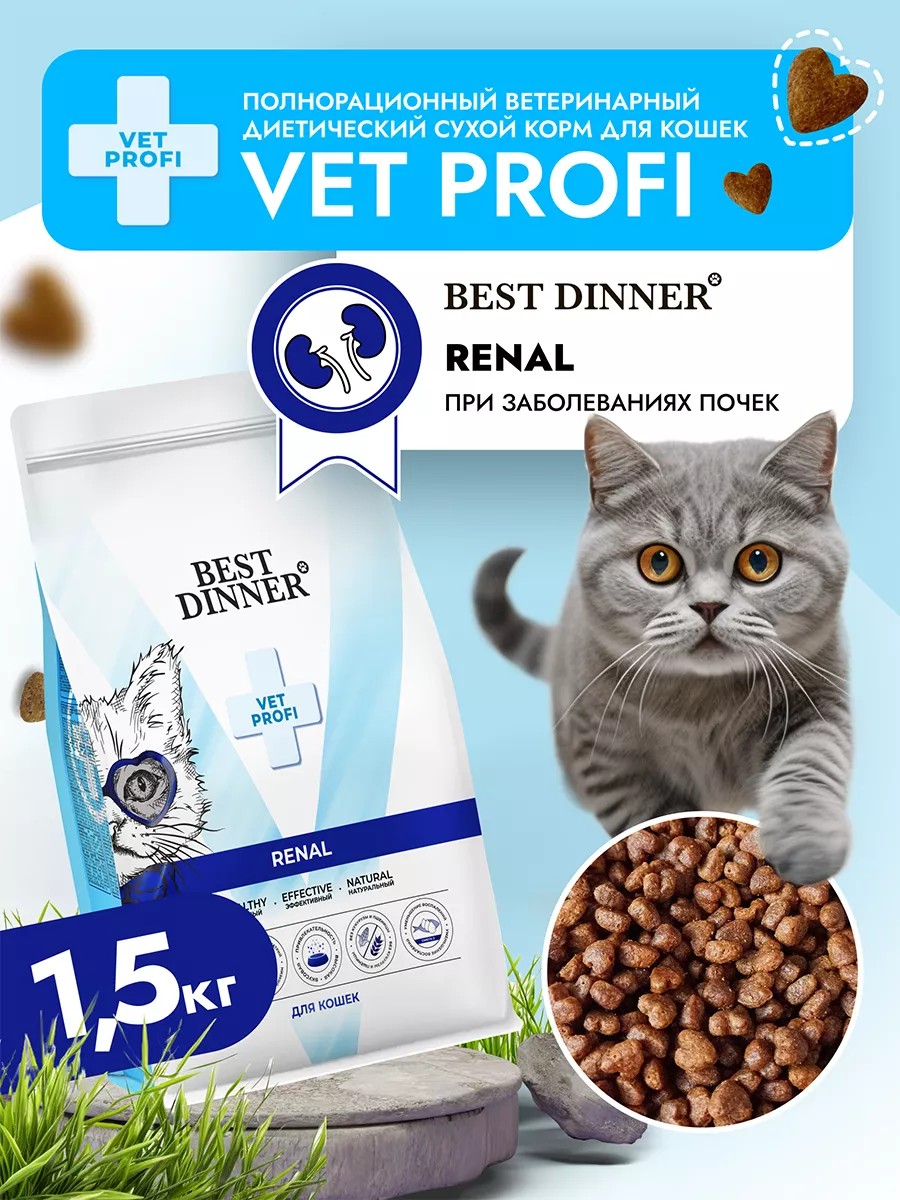 Высококачественный полнорационный сухой корм Best Dinner Vet Profi Renal .Этот корм разработан специально для кошек, страдающих заболеваниями почек. Благодаря своему составу и уникальной формуле, этот сухой корм помогает предотвратить развитие заболеваний, таких как: