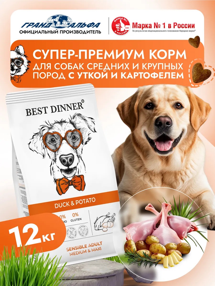Best dinner Корм для крупных собак сухой Утка картофель 12 кг