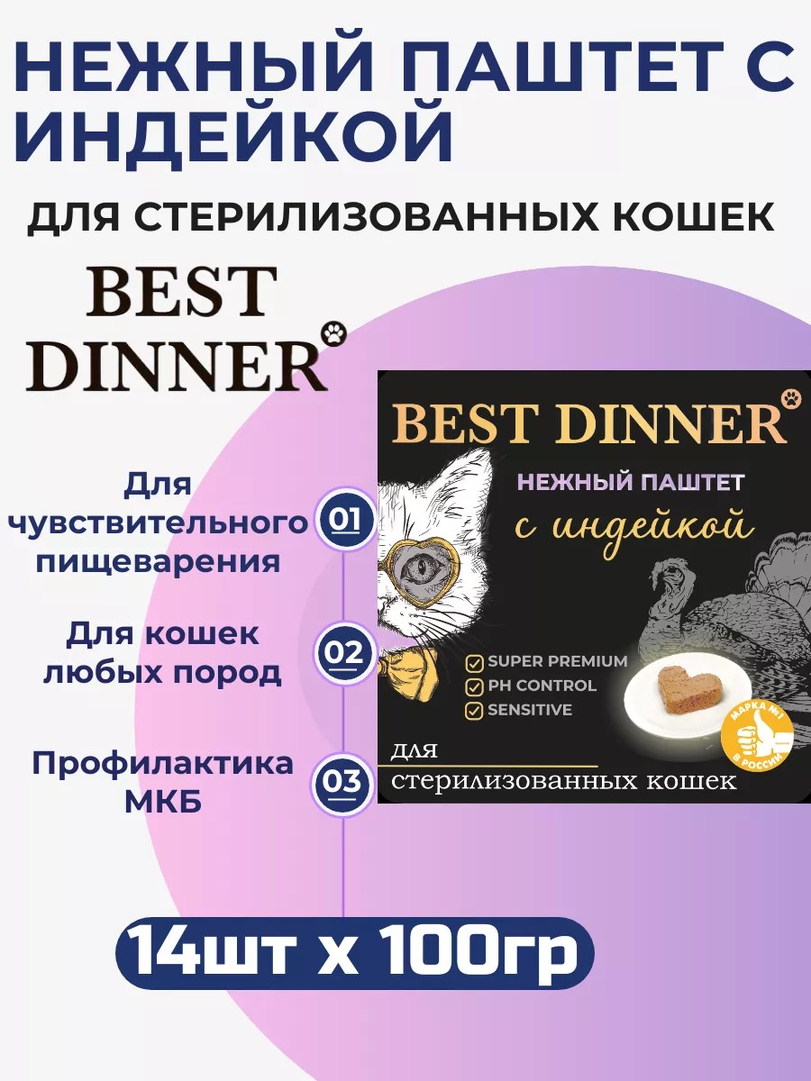 Best dinner Влажный корм для кошек нежный паштет из индейки 14шт х 100г