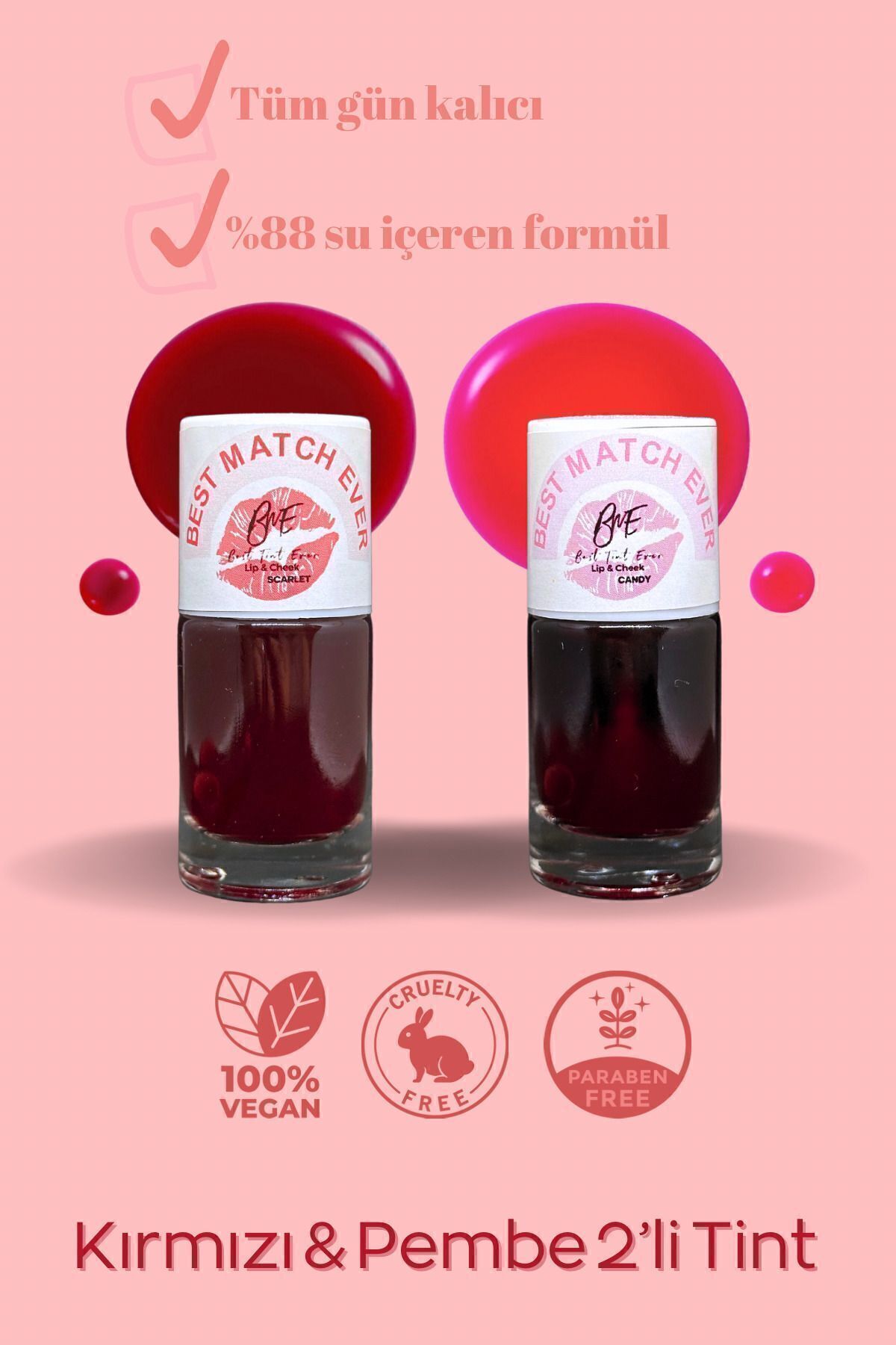 BEST MATCH EVER Set of 2-Red & Pink Tint-Lip & Cheek Tint-Intense Pigment-Lip & Cheek Tint