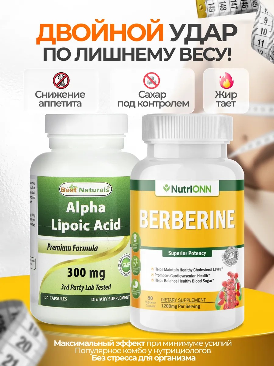 Best Naturals Alpha Lipoic Acid 120 капсул + NUTRIONN Berberine 90 капсул — комплекс для поддержки обмена веществ, энергии и здоровья сердца.