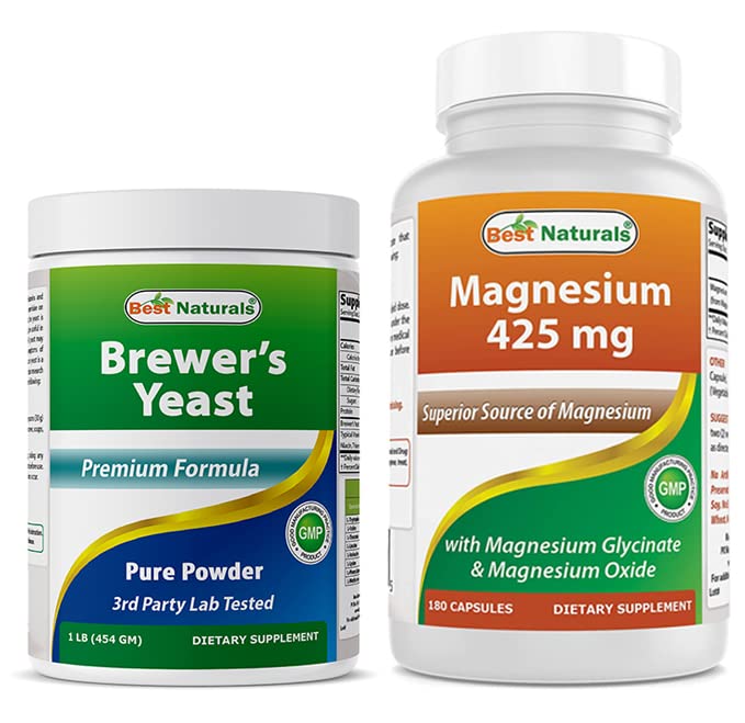Best Naturals Brewers Yeast Powder - 16 oz & Magnesium Glycinate 425 mg