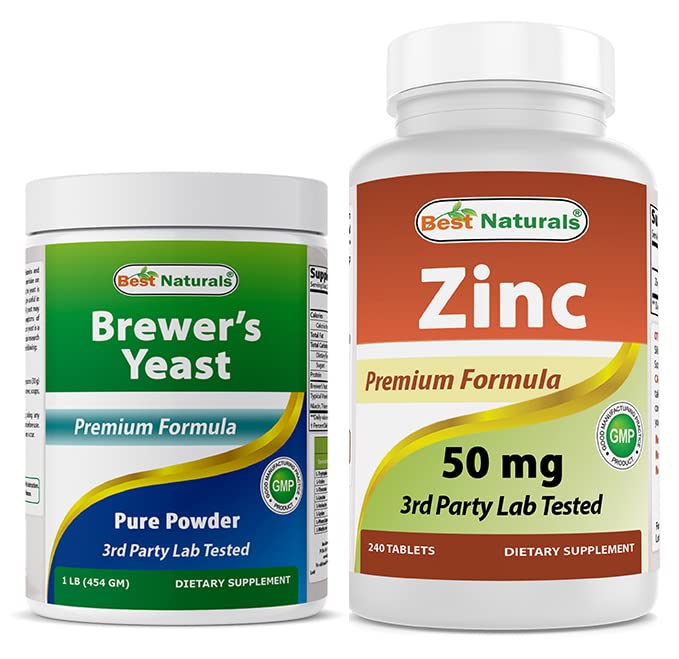 Best Naturals Brewers Yeast Powder - 16 oz & Zinc Gluconate 50mg