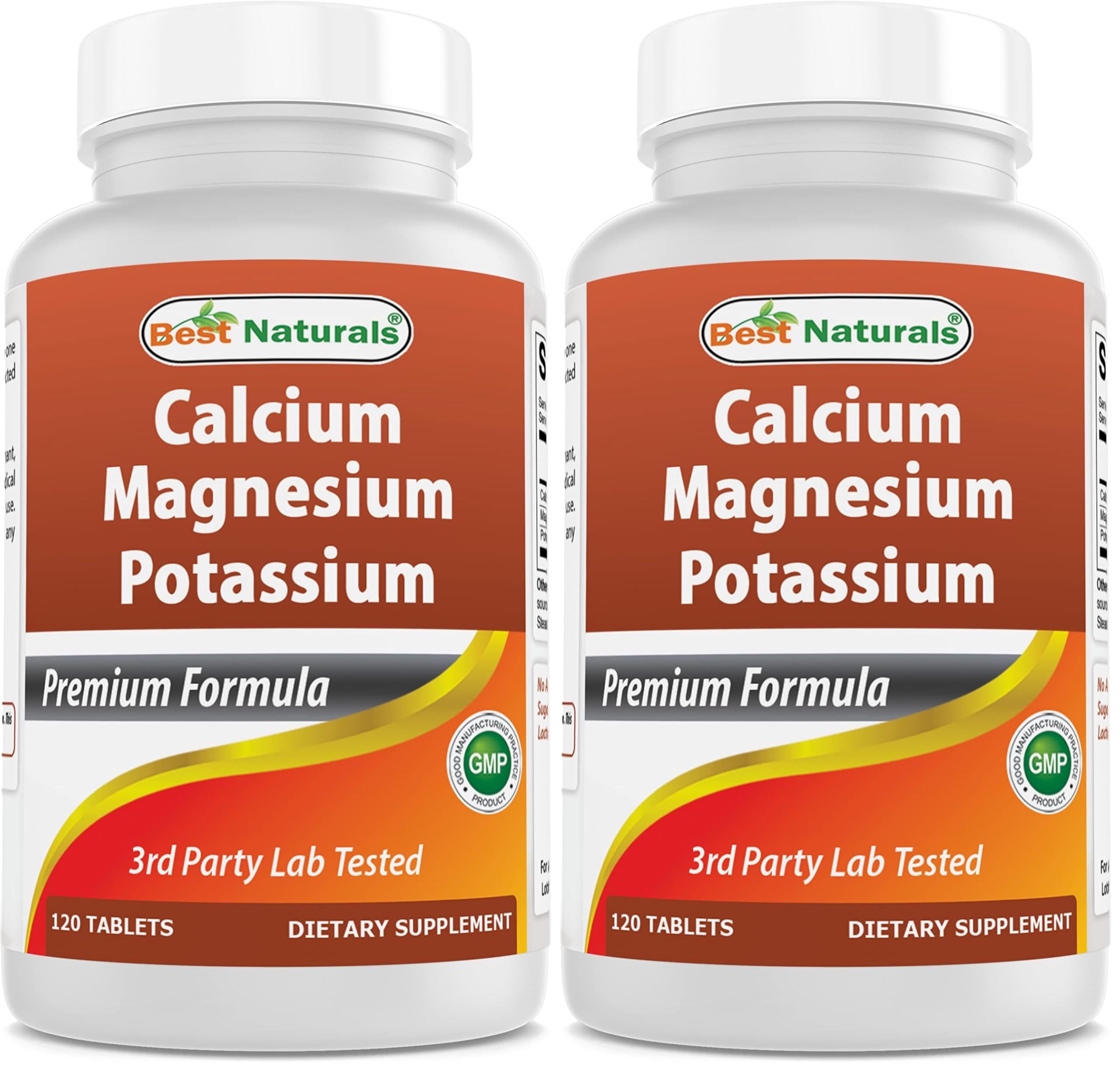 Best Naturals Calcium Magnesium Potassium - 120 Tablets - Non-GMO & Gluten Free (Pack of 2)