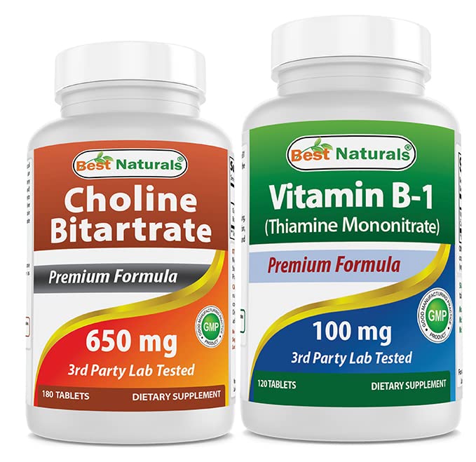 Best Naturals Choline Bitartrate 650 mg & Vitamin B1 as Thiamine Mononitrate 100 mg