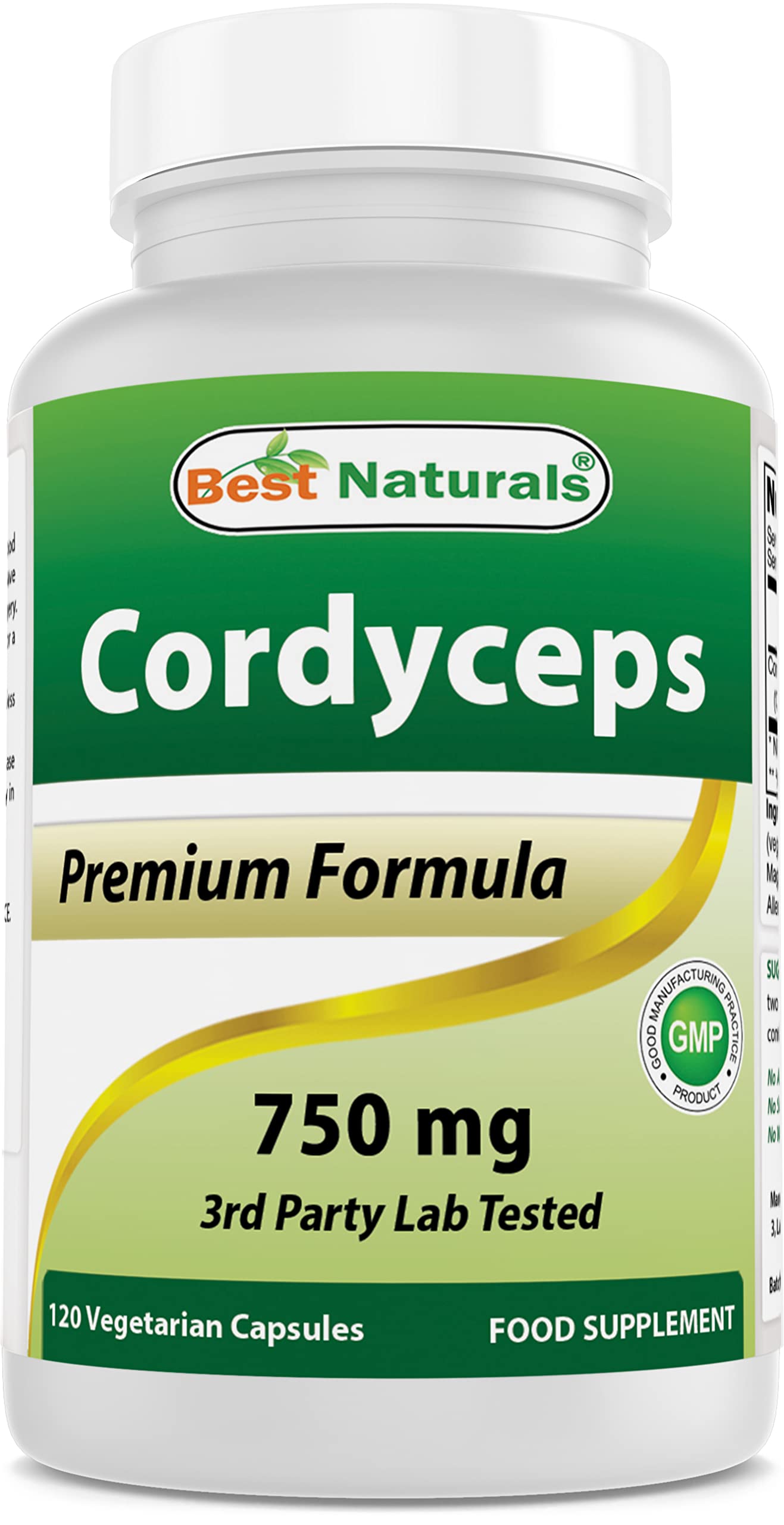 Best Naturals Cordyceps Sinensis Mycelium Mushroom Powder 750 mg 120 Veggie Capsules