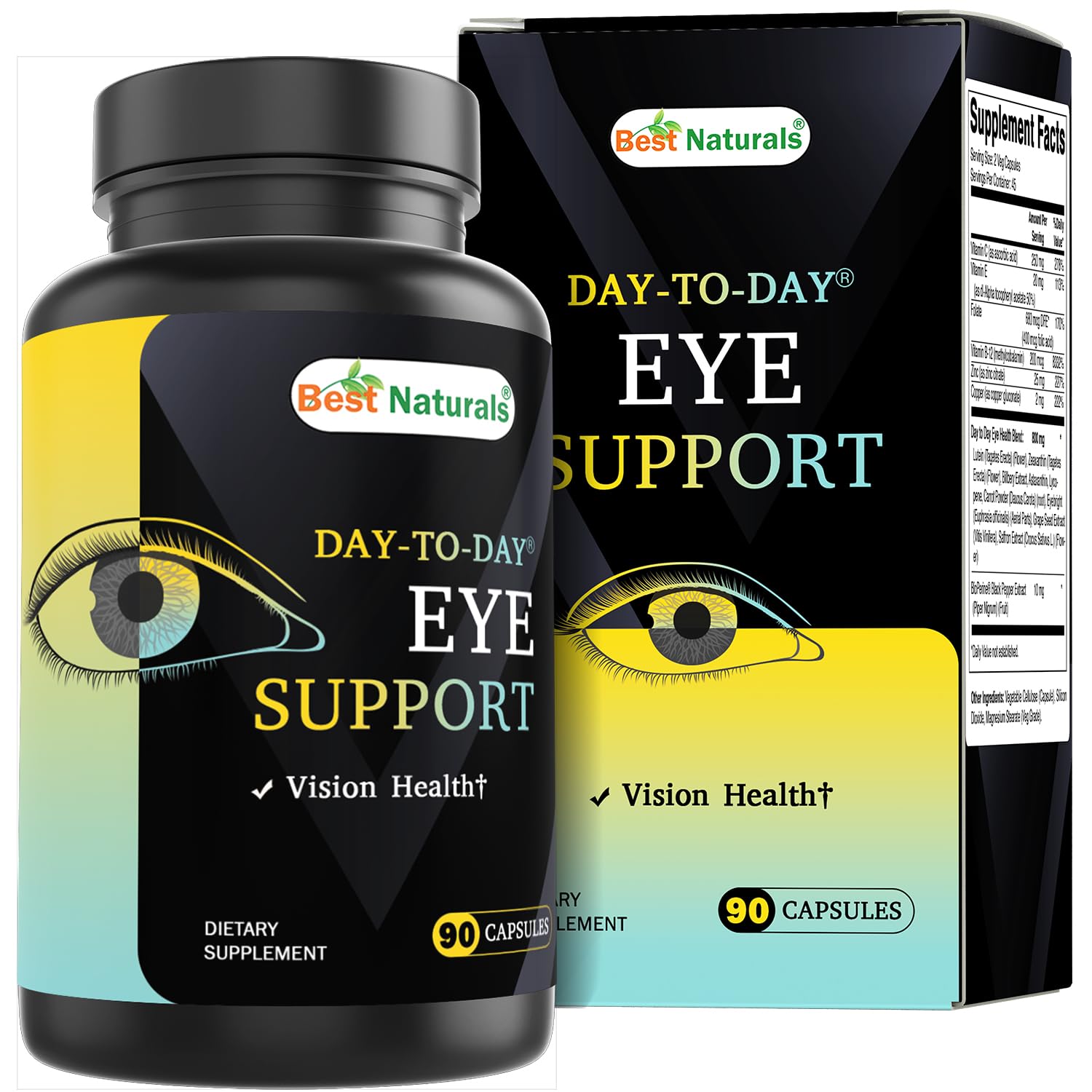 Best Naturals Day-To-Day Eye Support is a carefully formulated blend of botanical and nutrient ingredients, including Lutein (Tagetes Erecta) (Flower), Zeaxanthin (Tagetes Erecta) (Flower), Billbery Extract, Astaxanthin, Lycopene, Carrot Powder (Daucus Carota) (root), Eyebright (Euphrasia officina-lis) (Aerial Parts), Grape Seed Extract (Vitis Vinifera), Saffron Extract (Crocus Sativus L.) (Flower) BioPerine. This supplement is Non-GMO, Gluten-Free, and third-party lab tested for purity and quality. Manufactured in the USA in a GMP-compliant, FDA-registered facility, it contains no artificial colors, flavors, sweeteners, preservatives, or common allergens.