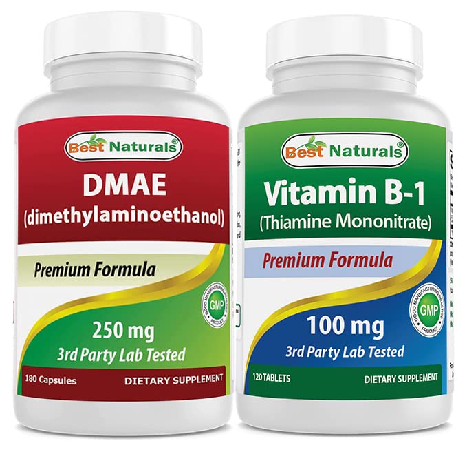 Best Naturals DMAE Supplement 250 mg & Vitamin B1 as Thiamine Mononitrate 100 mg