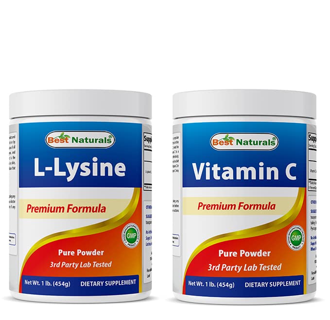 Best Naturals Lysine Powder 1 Pound & Vitamin C Powder 1 lb