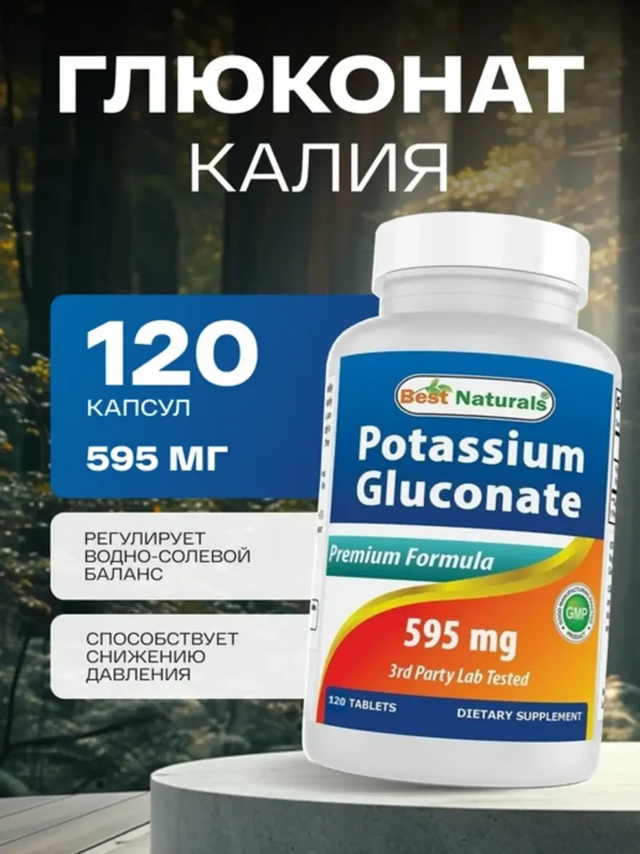 Best Naturals Глюконат калия 595 мг 120 капсул