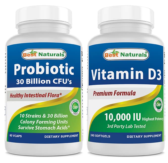 Best Naturals Probiotic 10 Strains & 30 Billion CFU & Vitamin D3 10000 IU
