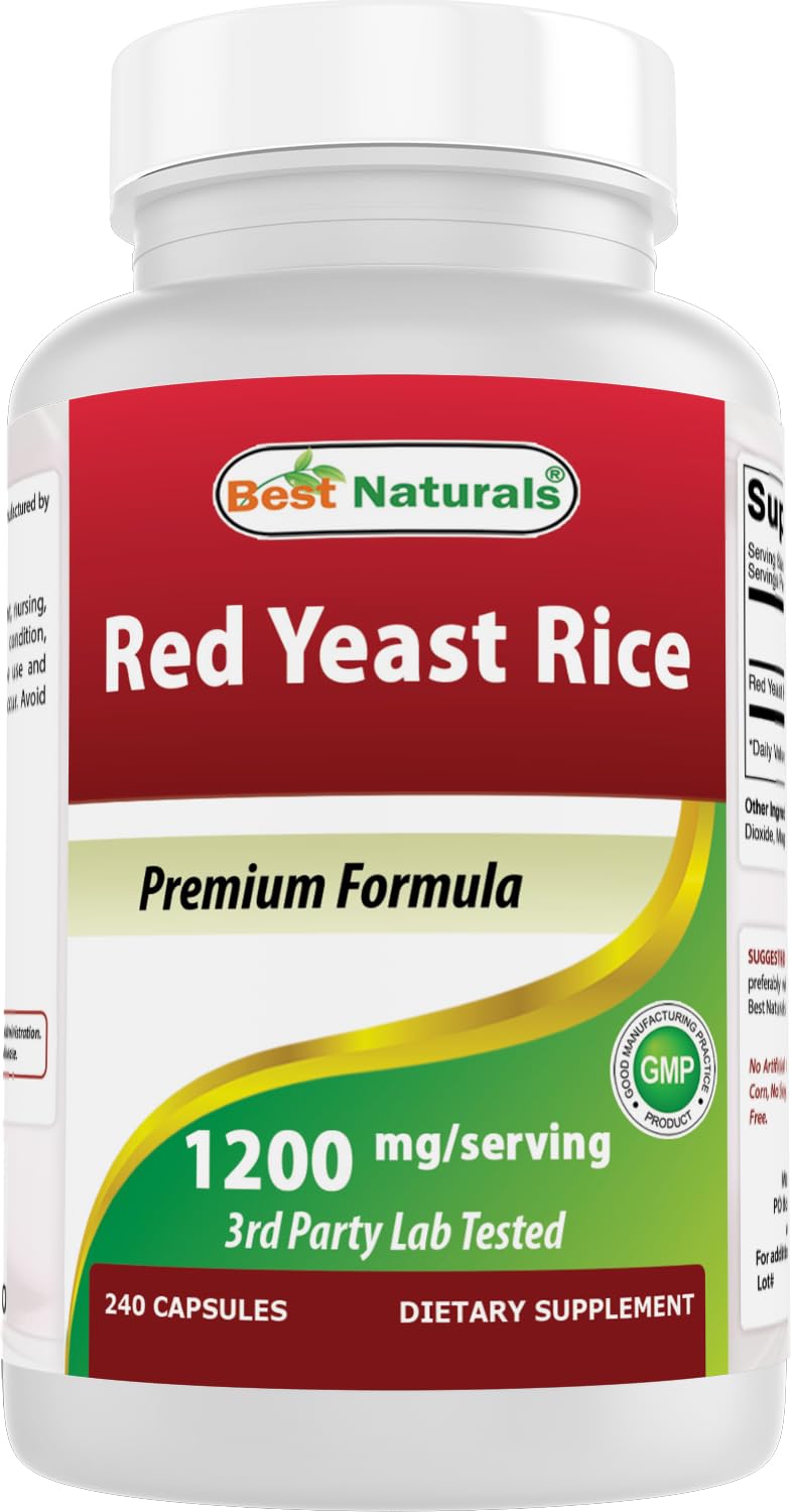Best Naturals Red Yeast Rice 1200mg Per Serving 240 Capsules - Premium Formula - 3rd Party Lab Tested 240 Count (Pack of 1)