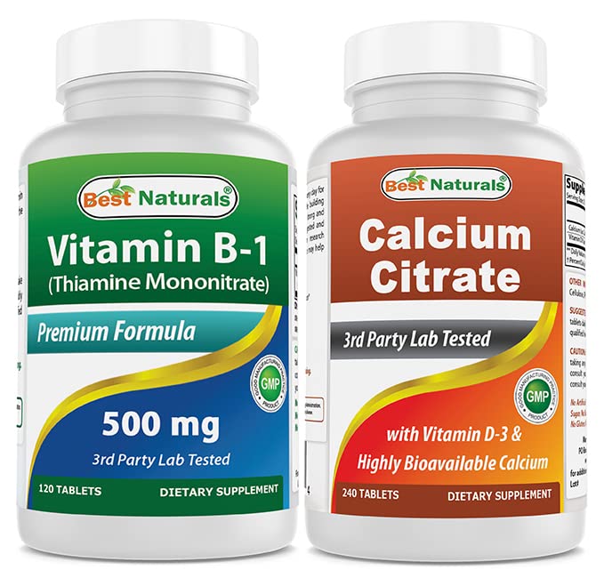 Best Naturals Vitamin B1 as Thiamine Mononitrate 500 mg & Calcium Citrate with Vitamin D-3